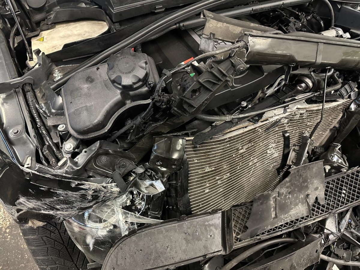 Airbag ausgelöst, Armaturenbrett, Front, Front links, Front rechts, Frontblech, Frontscheibe, Gurtstraffer ausgelöst, Kabelstrang, Klimakühler, Kotflügel links, Kotflügel rechts, Kühler, Kühlgitter, Motorgehäuse, Motorhaube, Scheinwerfer links, Scheinwerfer rechts, Schlossträger, Stosstange vorne