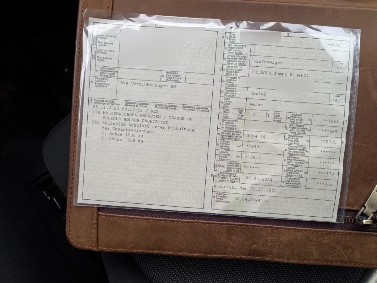 Türen: Seitliche Schiebetür rechts verblecht, Assist: Einparkhilfe hinten, Getriebe: 8-Stufen-Automat, Elektronisches Stabilitäts-Programm (ESP), Polster: Sitze gepolstert mit Stoff MICA TRITON, Türen: Flügeltüren hinten verblecht 50/50, Räder: Indirekte Erkennung von zu niedrigem Reifendruck, Airbag: Airbag Fahrer und Beifahrer, Garantie: 5 Jahre Korrosionsschutzgarantie, Assist: Antriebsschlupfregelung (ASR), Garantie: CITROEN 3 Jahre / 100'000km Garantie auf Lackierung, 2 PLIP-Schlüssel mit separater Verriegelung Kabine/Ladebereich, Sitze: 3 plätze, Lackierung: Uni-Lackierung, Assist: Tempomat mit Geschwindigkeitsbegrenzer, Assist: Antiblockiersystem (ABS) mit Notbremsassistent, Assist: Berganfahrhilfe (Hill Holder), Assist: Erweiterte Verkehrszeichenerkennung, Assist: Safety Brake, Assist: Spurhalteassistent, Assist: Traktionskontrolle, Aussenspiegel beheizbar und elektrisch einstellbar, Aussenspiegel in schwarz, Elektrische Fensterheber vorne, Garantie: CITROEN 3 Jahre Garantie bis 100000 Km auf Teile, Arbeit und Citroën Assistance, Klima: Manuelle Klimaanlage, LCD-Display Schwarz-Weiss 100% digital, Lackierter Boden ohne Schutz, Laderaumverriegelung - Blinkertaste, Licht: Automatisches Einschalten der Scheinwerfer, Licht: Fernlichtautomatik, Media: DAB+-Radiosystem (2LP), 5'' Monochrom-Touchscreen, Bluetoohth Audio Streaming, - 1 USB Typ A-Anschluss, Citroën Connect Box, Bedienung am Lenkrad, Offenes oberes Mittelfach A4, oberes Handschuhfach auf Beifahrerseite geschlossen, - unteres Handschuhfach auf Beifahrerseite offen, Regensensor für Scheibenwischer vorne, Räder: Reifen 215/65 R16 auf Blechfelgen mit Radkappen DEMI-STYLE, Räder: Reifenreparatur-Set, Schwarz getönte Seitenschutzleisten, Servolenkung elektrisch, Stossfänger vorne und hinten schwarz, Trennwand verblecht, Verzurrösen auf dem Laderaumboden - 6, Zentralverriegelung aller Türen Automatische Entriegelung im Falle eines Stosses