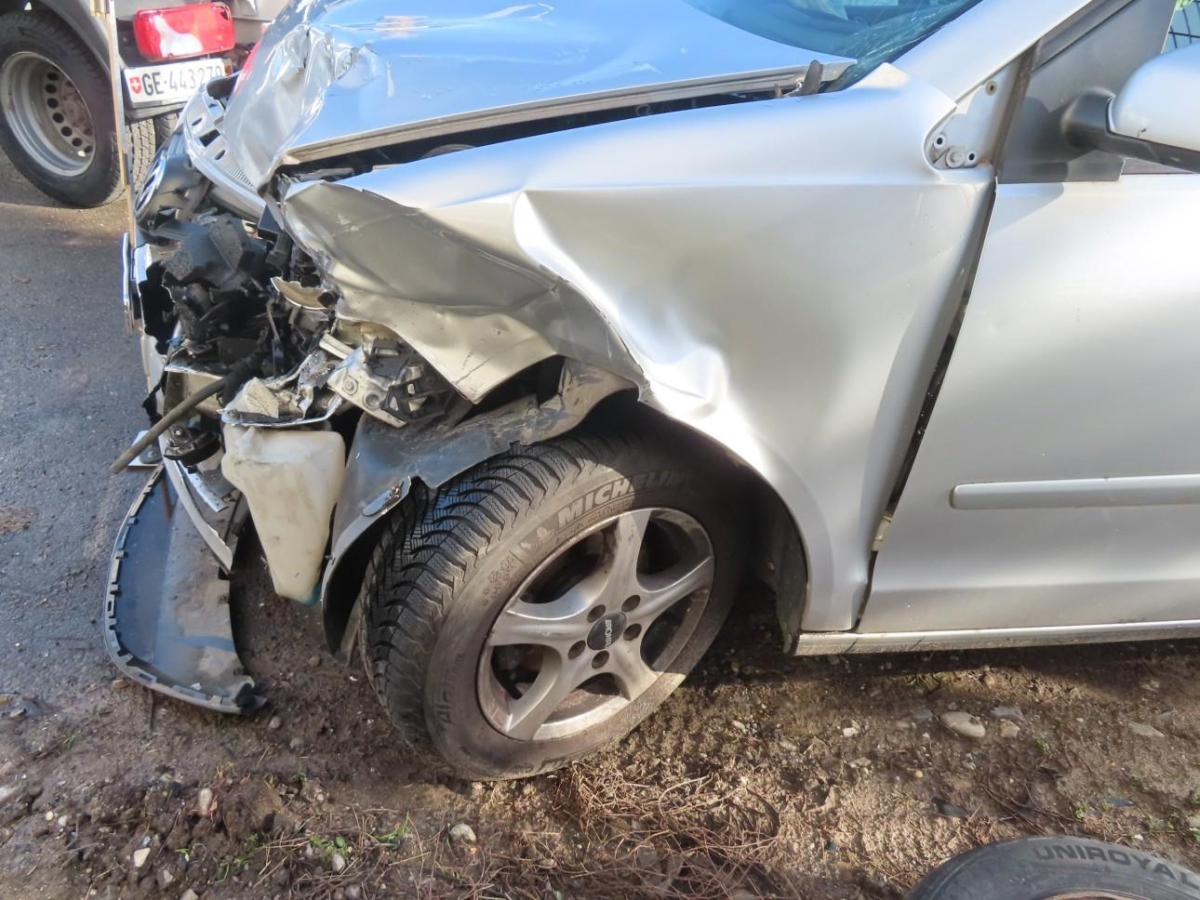 Le véhicule a subi un choc avant gauche. Airbags déclenchés.