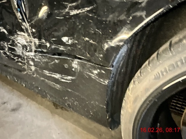 Beschreibung der Schäden: Kotflügel VL, Türe VL, Schweller VL , Schwellerverkleidung L , Seitenwand HL stark deformiert. Türe VL lässt sich nicht öffnen, es ist davon auszugehen, dass weitere Schäden hinter der Türe bestehen. Auch ist die Deformation der Seitenwand so stark, dass auch das Innenteil deformiert sein kann.