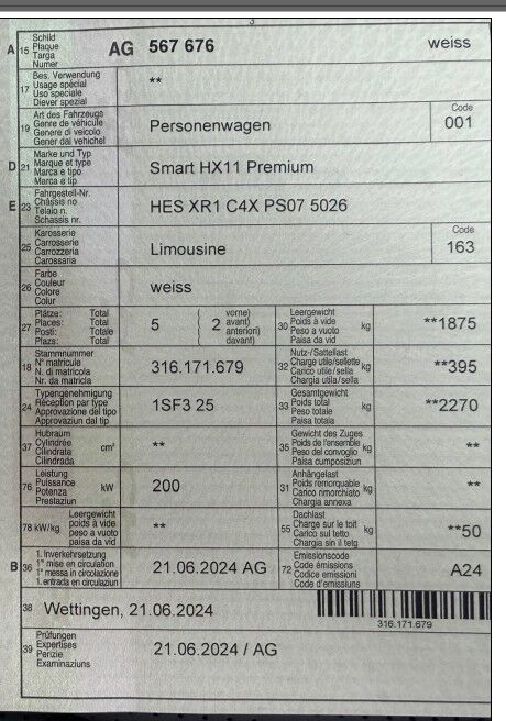 Keine technische Prüfung (Werkstatttest) vorgenommen Fahrzeug ab Platz, ohne Garantie und Aufbereitung. Motor Getriebe Vorderachse Hinterachse Airbags ausgelöst: 0 unbekannt ( Abfallcode 16.01.04ak )