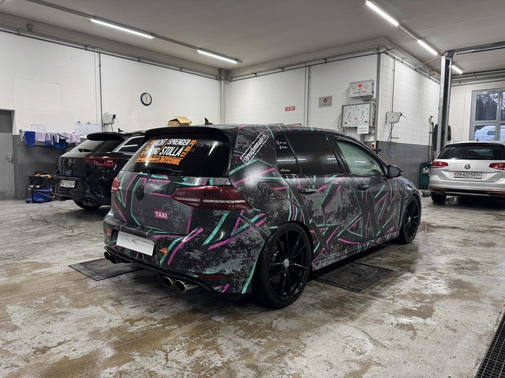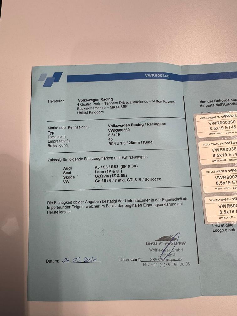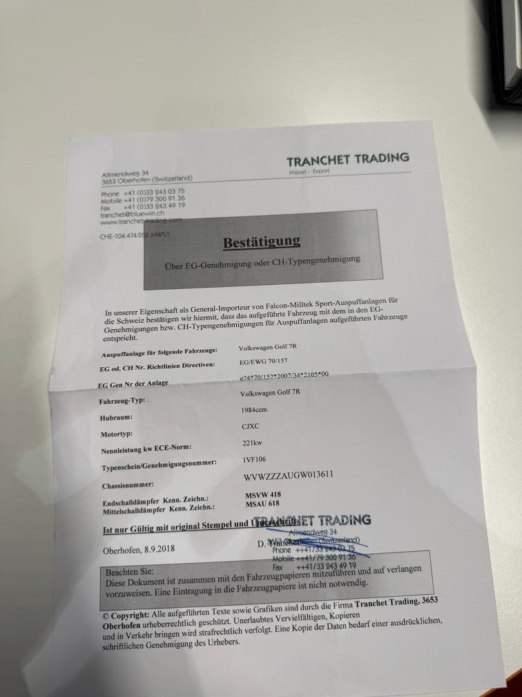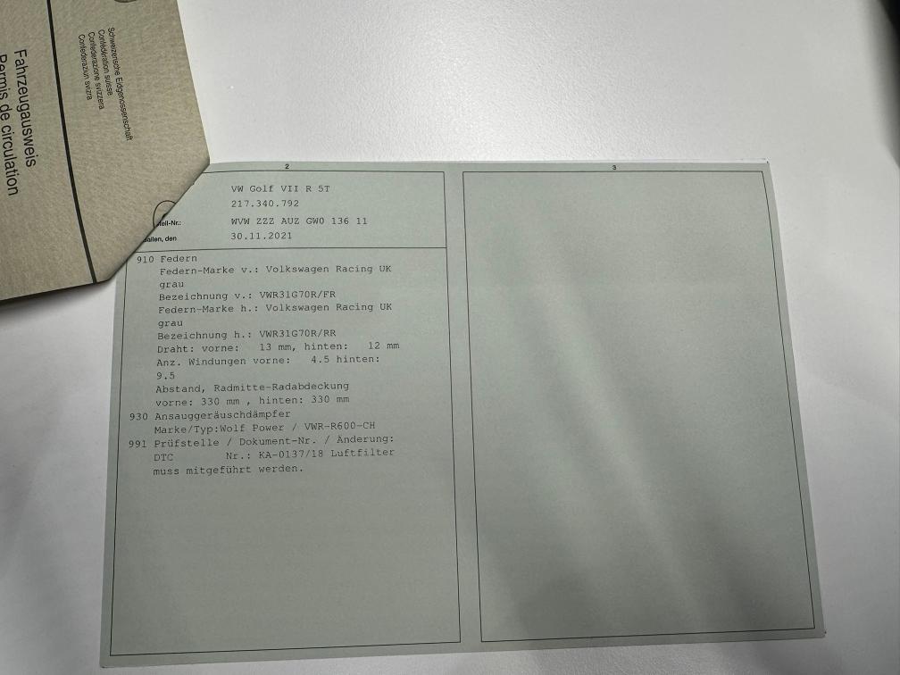 - Grundfarbe des Fahrzeugs ist schwarz. Alles foliert, daher können wir den Lack nicht einschätzen! - Felgen sind teilweise angefahren. - 2 Sommerpneus müssen ersetzt werden. (gem. Kunde) - Sommerfelgen sind Originalfelgen und wurden umlackiert. - Es könnte noch eine Leistungssteigerung vorhanden sein. Hier sind keine Unterlagen vorhanden. - Gemäss Kunde wurden alle Tuningteile eingetragen. Einige Teile müssten für MFK demontiert werden. - Fahrzeug noch im Kundenbesitz - Kein Eintauschtest durchgeführt - keine Nachverhandlung und / oder Nachwährschaft - Fahrzeugkarosserie div. Gebrauchsspuren aussen gemäss Fotos