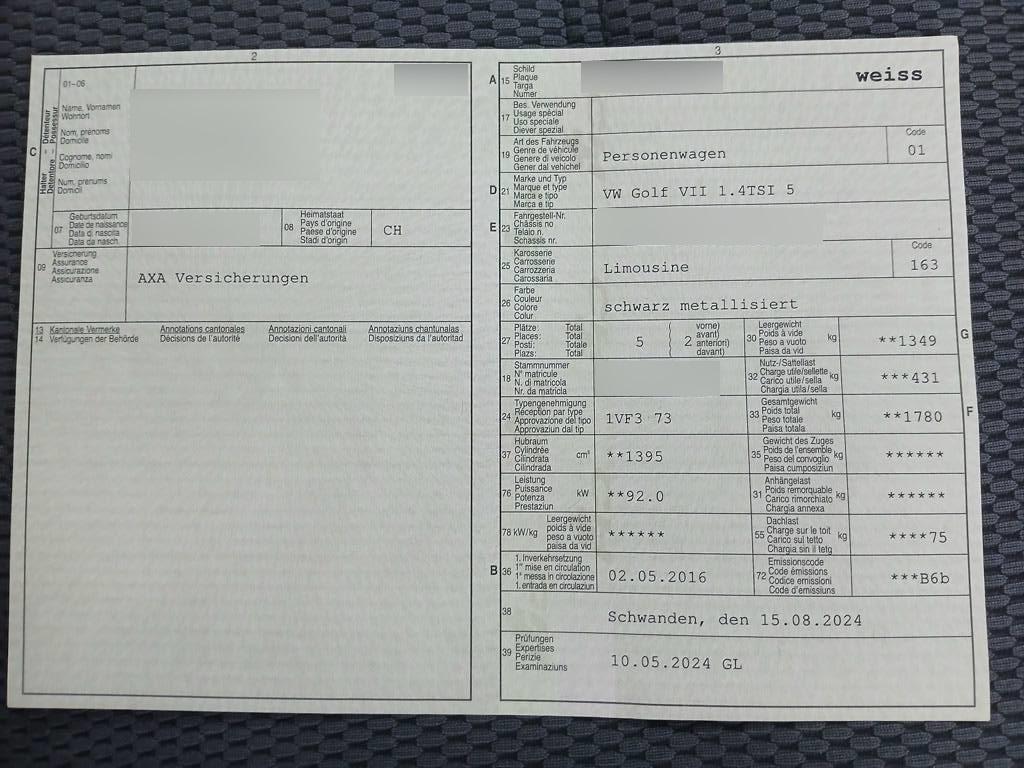 Auto-Hold-Funktion, Warndreieck, Zentralverriegelung mit Fernbedienung, Stopp-/Start-System, Drehzahlmesser, Radiosystem Composition Colour, Scheibenwischer vorne mit Intervall, Antiblockiersystem (ABS), Aktive Kopfstützen, ISOFIX Kindersitzvorrichtung, Kombi-Instrumente mit Chromzierringen, Elektronische Differentialsperre (XDS), Blinker in Aussenspiegel, Gurtstraffer vorne, Räder: Reifenkontrollanzeige, Nebelscheinwerfer mit Abbiegelicht, Reifenreparatur-Set mit Kompressor, Grün getönte Scheiben, Leichtmetallräder (Toronto) 6,5x16J, Licht: Coming-home-Funktion, Sitze: Vordersitze mit höheneinstellung, Handschuhfach beleuchtet, klimatisiert und abschliessbar, Klima: Pollenfilter (Staubfilter), Wassertemperaturanzeige, Elektronische Parkbremse, Leseleuchten vorne, Heckscheiben-Wisch-/Waschanlage mit, Teppichfussmatten vorne und hinten, Gangempfehlung, 2 Schlüssel mit Fernbedienung, Ablagen in den Türen, Elektronisches Stabilitäts-Programm ESP, 3-Punkt-Sicherheitsgurte auf allen Plätzen, Wärmeschutzverglasung, Antriebsschlupfregelung (ASR), Laderaumabdeckung, Durchlademöglichkeit in der Rücksitzbank inkl. Mittelarmlehne hinten, Wegfahrsperre elektronisch, Stossstangen in Wagenfarbe, Innenlicht-Abschaltverzögerung, Halogenscheinwerfer, Antennen-Diversity, 12 Volt-Steckdose im Laderaum, 3 Kopfstützen hinten, Einstellbare Lendenwirbelstütze für den Fahrer und Beifahrer, Katalysator geregelt, Airbag: Airbag Beifahrer deaktivierbar, Kofferraumbeleuchtung, Licht: Nebelschlussleuchte, Sitze: Komfortsitze vorne, Multikollisionsbremse, Tagfahrlicht, Seitenairbag für Fahrer und Beifahrer, Knie-Airbag für Fahrer, Sitze: Rücksitzlehne geteilt abklappbar, Bremsassistent (BAS), Regensensor für Scheibenwischer vorne, Schublade unter Beifahrersitz, Leseleuchten hinten, Cupholder vorne und hinten, Ladeboden variabel, Lenkrad: Lenkrad längs- und höhenverstellbar, Ausstiegsleuchten in den Türen, Airbag: Window-Kopfairbags, Tankdeckel-Entriegelung von innen, Make up-Spiegel beleuchtet für Beifahrer, Heckscheibenheizung, Leder-Multifunktionslenkrad im 3-Speichen-Design mit Schaltpaddles, Aussenspiegel rechts und links beheizt und elektrisch verstellbar, asphärisch gewölbtes Spiegelglas, Fahrprofilauswahl, Instrumentenbeleuchtung, regelbar, Befestigungsösen im Laderaum, Wartungsintervall-Anzeige, Geschwindigkeitsregler und -begrenzer, Mittelarmlehne vorne mit Ablagefach, Multifunktionsanzeige Plus, Make up-Spiegel beleuchtet für Fahrer, Gurtkontrolle, Lackierung: Uni-Lackierung, Höhenverstellbare Gurten vorne, Wagenheber und Radschraubenschlüssel, Ablagefach im Dachbereich, Aussentemperaturanzeige, Airbag: Airbag Fahrer und Beifahrer, 4 Scheibenbremsen, Bremsenergie-Rückgewinnung, Innenspiegel automatisch abblendbar, Heckspoiler, Sequentielles 7-Gang-Getriebe DSG mit Automatikfunktion, Aussenspiegel und Türgriffe in Wagenfarbe, Licht: Drittes Bremslicht, Dekoreinlagen Brushed Silber, Tageskilometerzähler, Elektrische Fensterheber vorne + hinten, Klimaanlage halbautomatisch Climatic, Lichtwarnsummer, Servolenkung geschwindigkeitsabhängig, Kopfstützen hinten abklappbar, Polster: Stoff-Ausstattung, Assist: Müdigkeitserkennung, Radiovorbereitung, Antenne und Entstörung, Kartentaschen an den Rückenlehnen