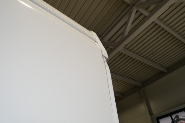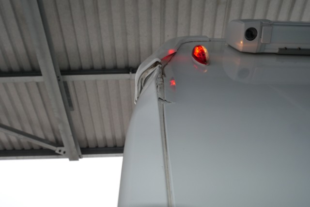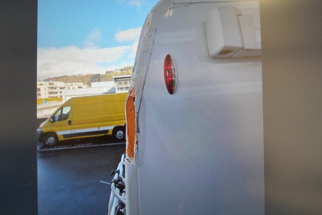 Seite rechts eingedrückt. Seite rechts hat ein Loch. Heck eingedrückt.
