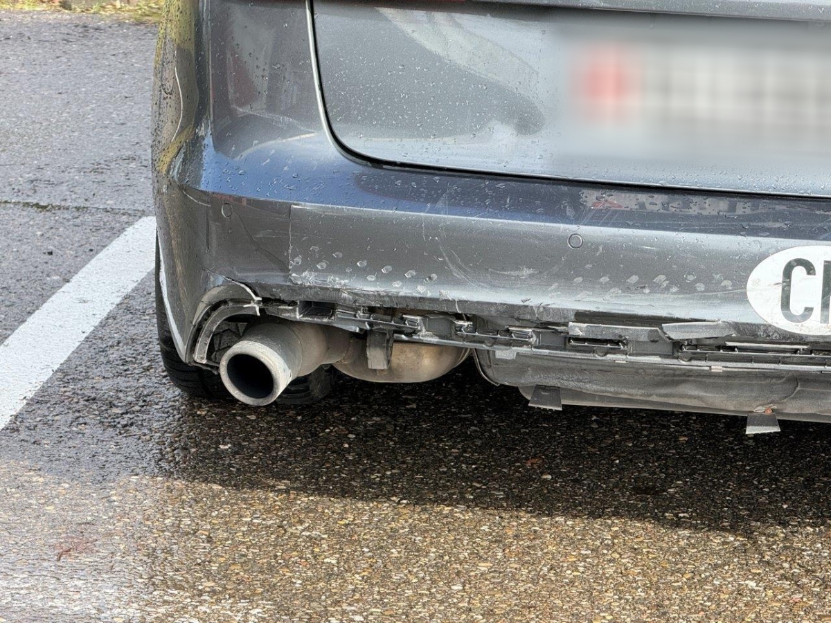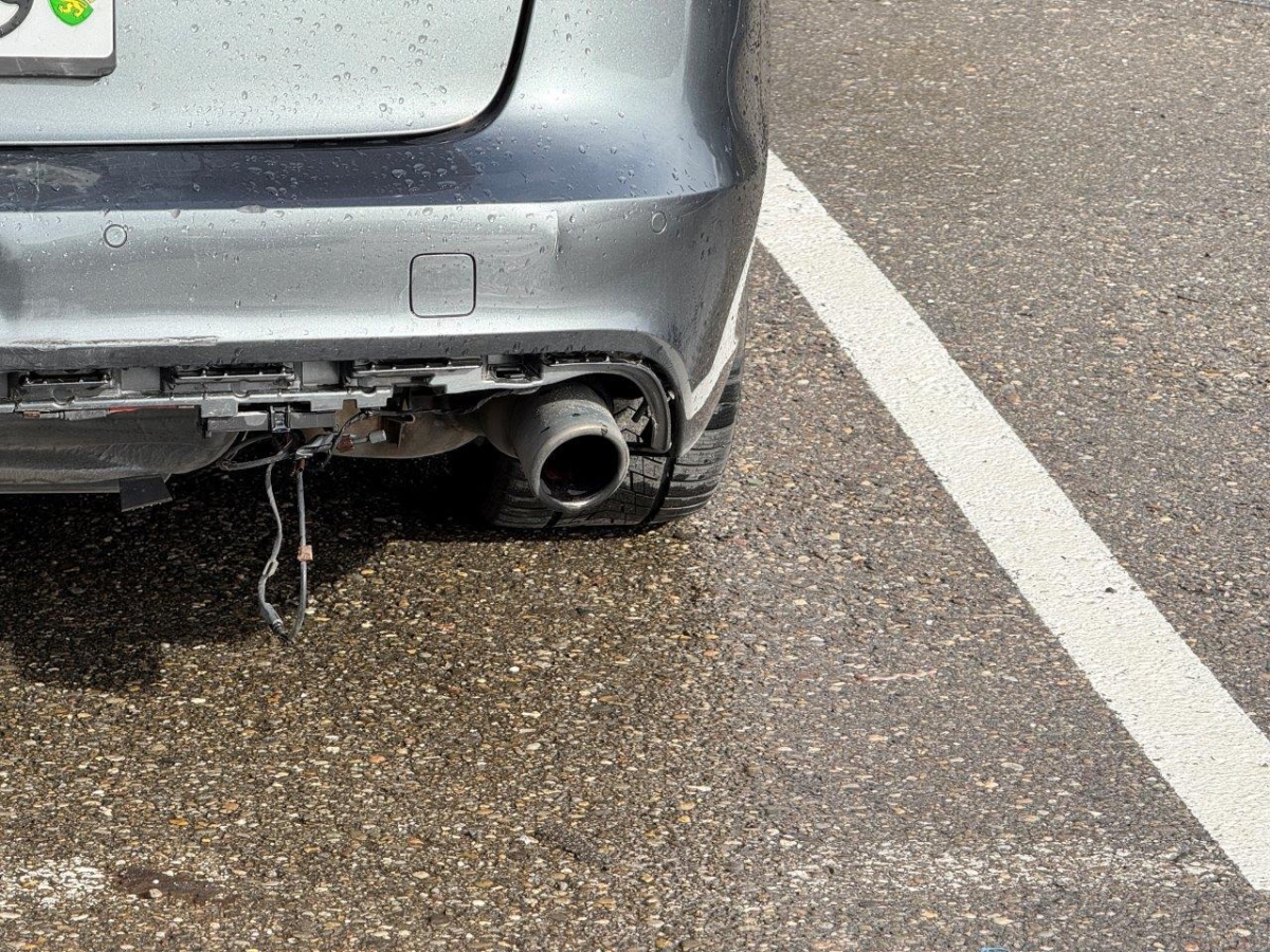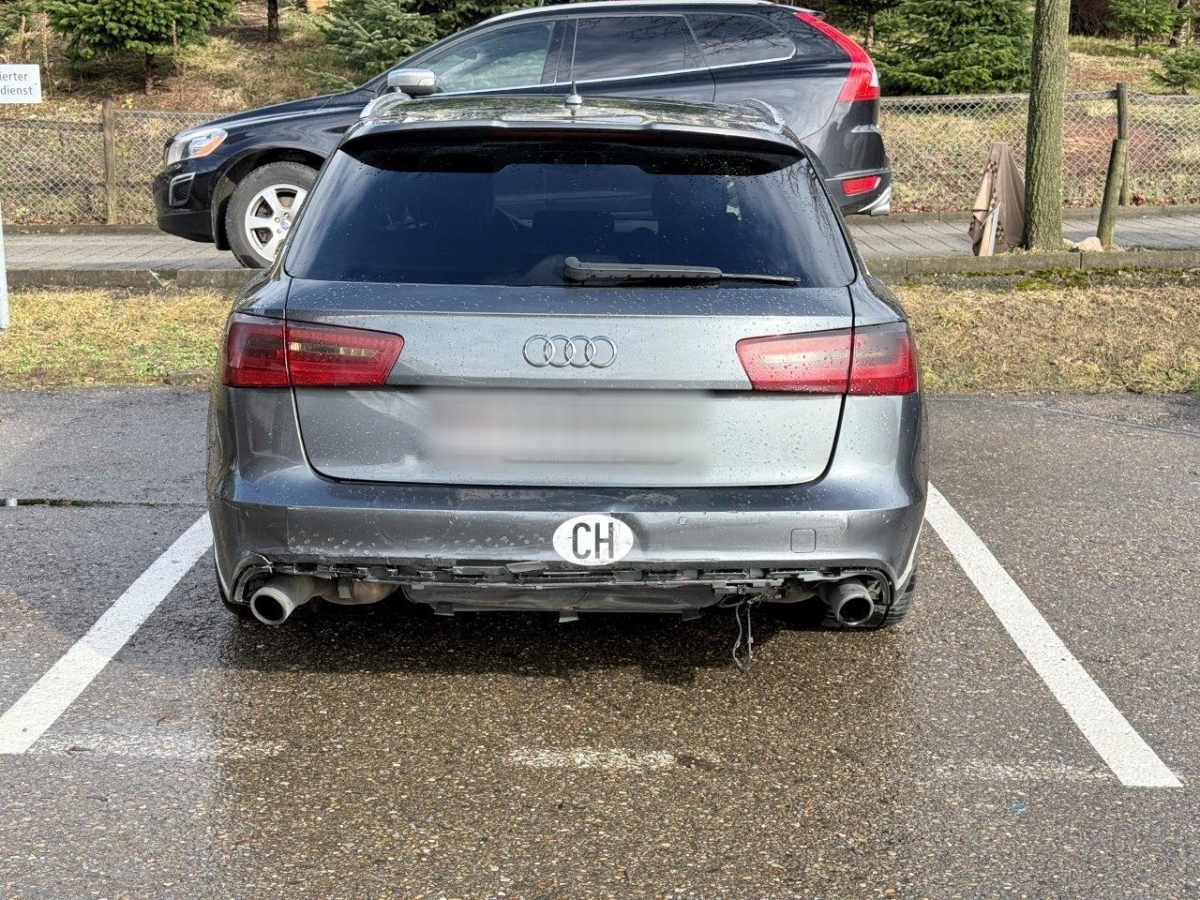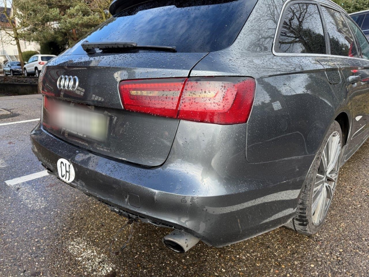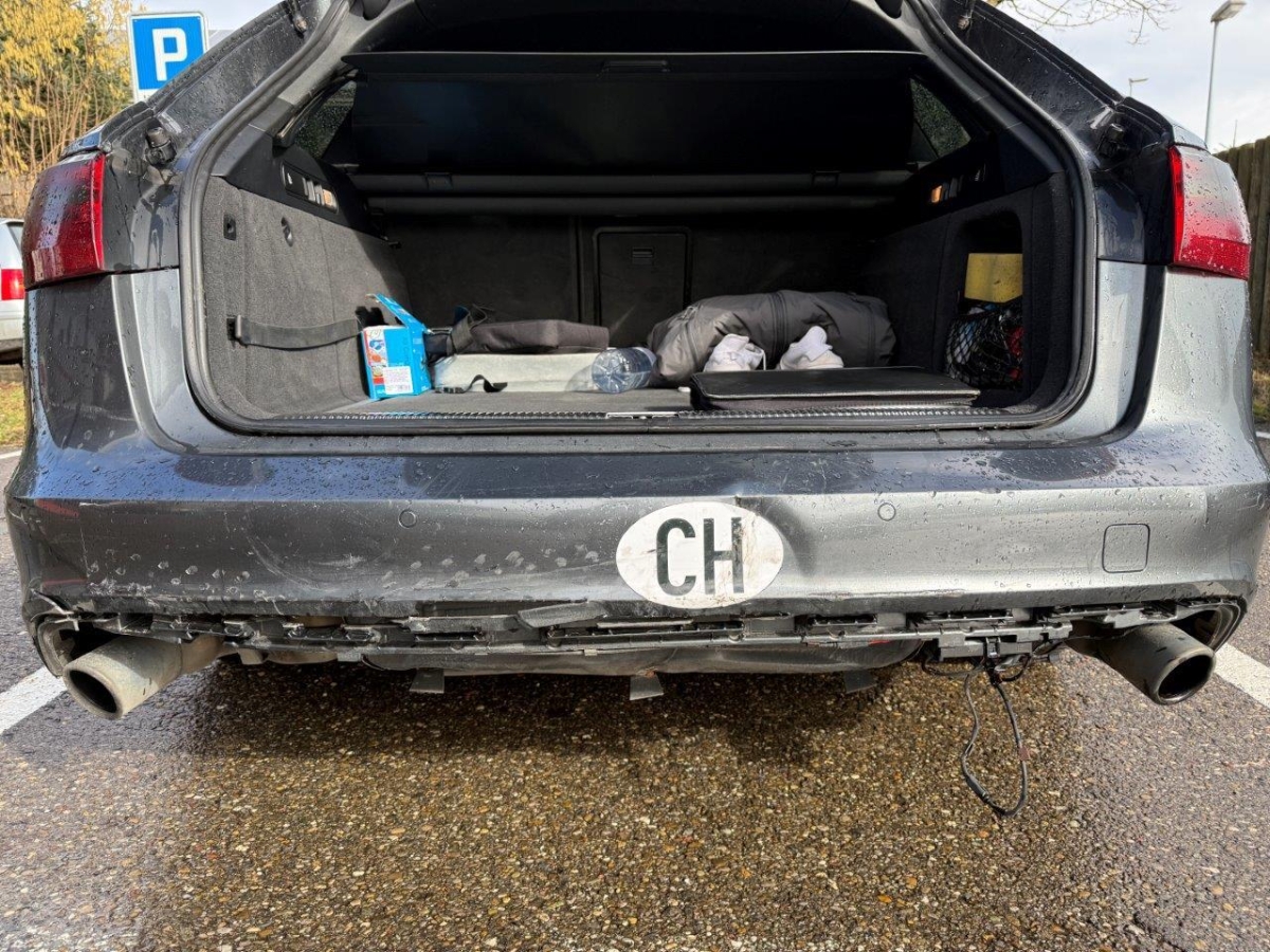 Anprall hinten: Dabei wurde die Heckklappe, die Stossstange, der Diffusor, die PDC-Sensoren mit Kabel, das Heckblech, der Träger, das Bodenblech, das Ersatzrad, der Endschalldämpfer sowie diverse Anbauteile beschädigt