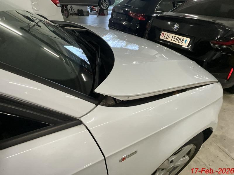 Beschreibung der Schäden: Der Heckdeckel, das Heckblech, der Kofferboden, der Stossstangenträger, die Auspuffanlage sind deformiert. Die Stossstange hinten ist gerissen. Der Fussgängerschutz vorne hat ausgelöst.