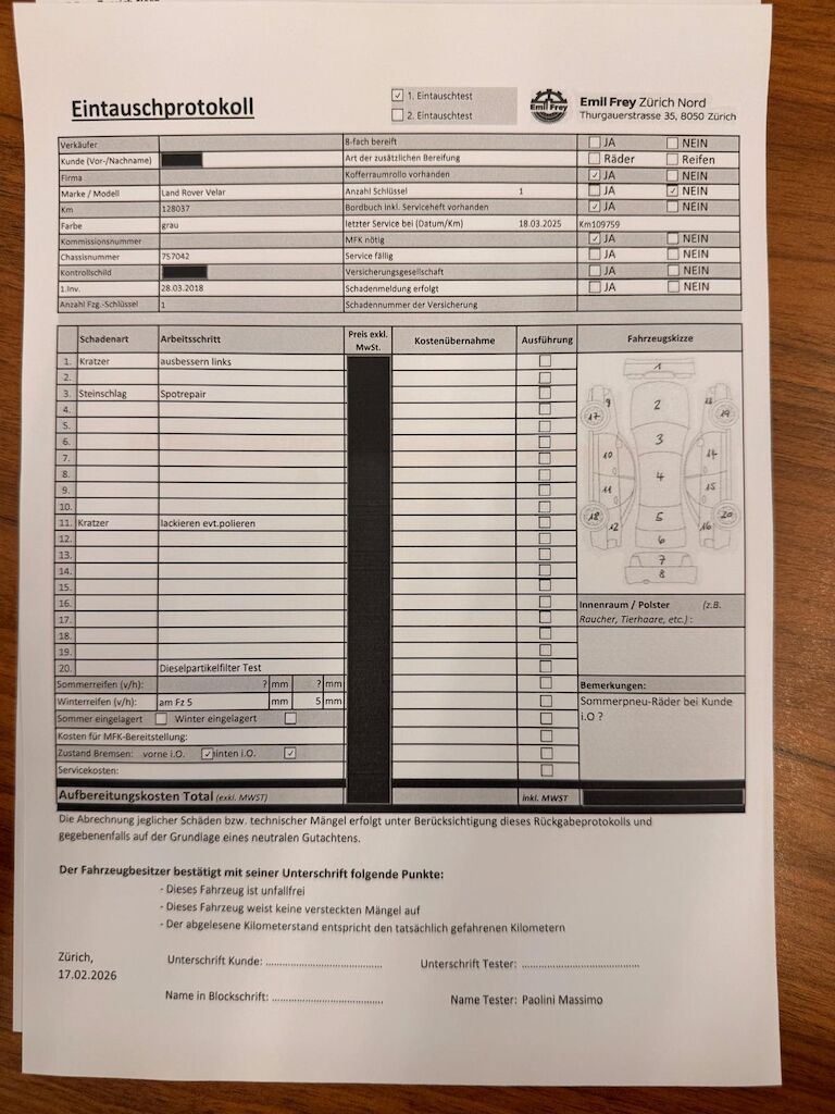 Keine technische Prüfung (Werkstatttest) vorgenommenDiverse Schäden an Karosserie/Lack.Fahrzeug ab Platz, ohne Garantie und Aufbereitung.DPF/FAP Filter nicht kontrolliertKeine Gewähr auf die Angaben der Sonder- und Serienausstattung / keine mechanische Prüfung. Fahrzeug wurde unzerlegt expertisiert / keine Haftung für allfällige, nach Demontage bekanntwerdenden Mängel. Fahrzeugbereifung und Ausstattung gemäss Fotos / Fahrzeugkauf auf eigenes Risiko ab Platz ohne Nachwährschaft.- Kratzer Stosstange VL- Steinschlag frontscheibe-Kratzer Türe HL- Diselpartikelfilter muss ersetz werden.- Fahrzeug ist 8Fach bereift.