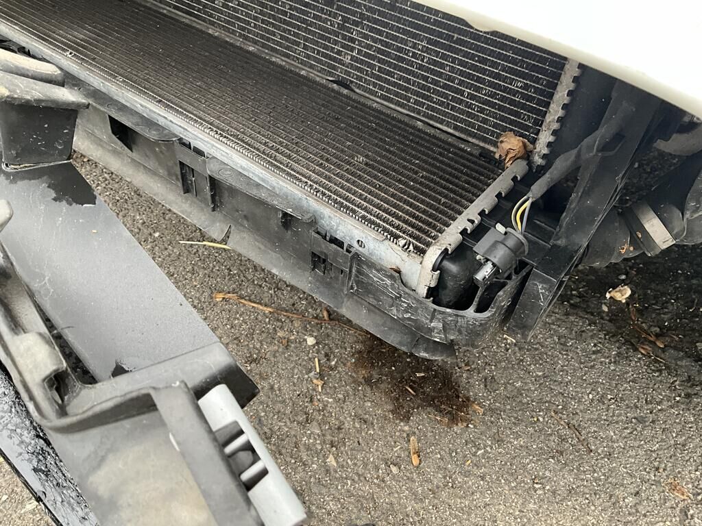 Capot, charnière de capot, aile AVG et AVD enfoncés. Pare chocs AV, calandre, phare AVG, convoyeur d'air endommagés. Protection de piétons déclenchés. Train AVG plié. Tourelle de suspension AVG enfoncée. Motor Getriebe Vorderachse Hinterachse Airbags ausgelöst: 0 unbekannt ( Abfallcode 16.01.04ak )
