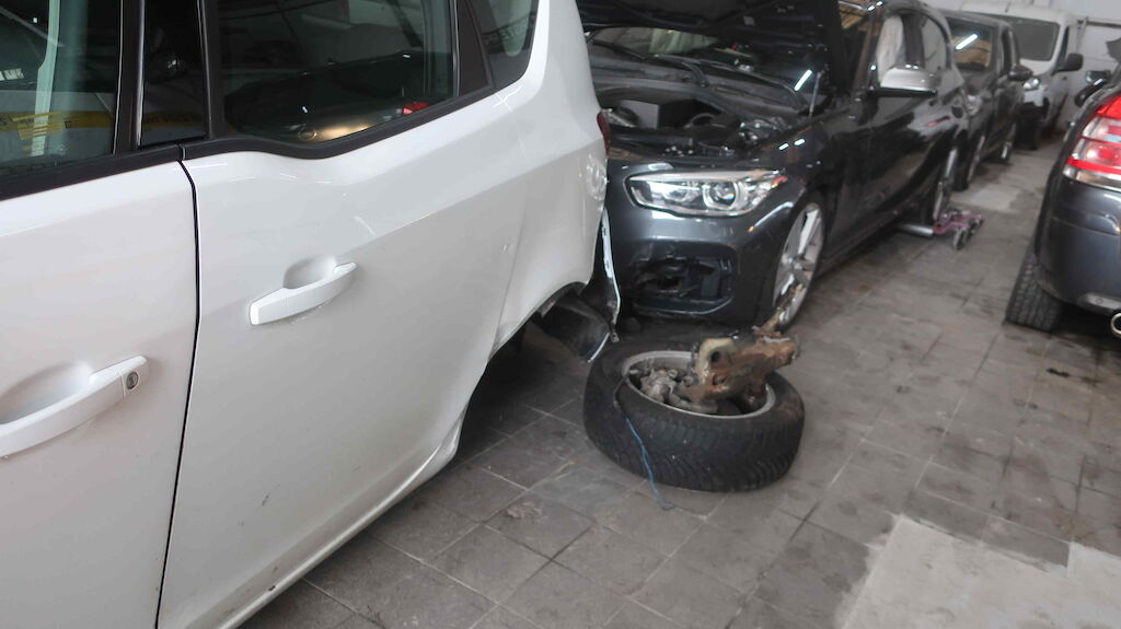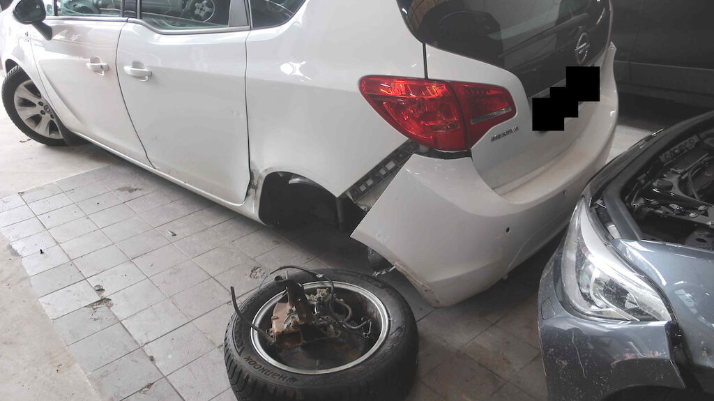 Pare-chocs, aile, porte et train arrière gauche endommagés. Motor Getriebe Vorderachse Hinterachse Airbags ausgelöst: 0 unbekannt ( Abfallcode 16.01.04ak )