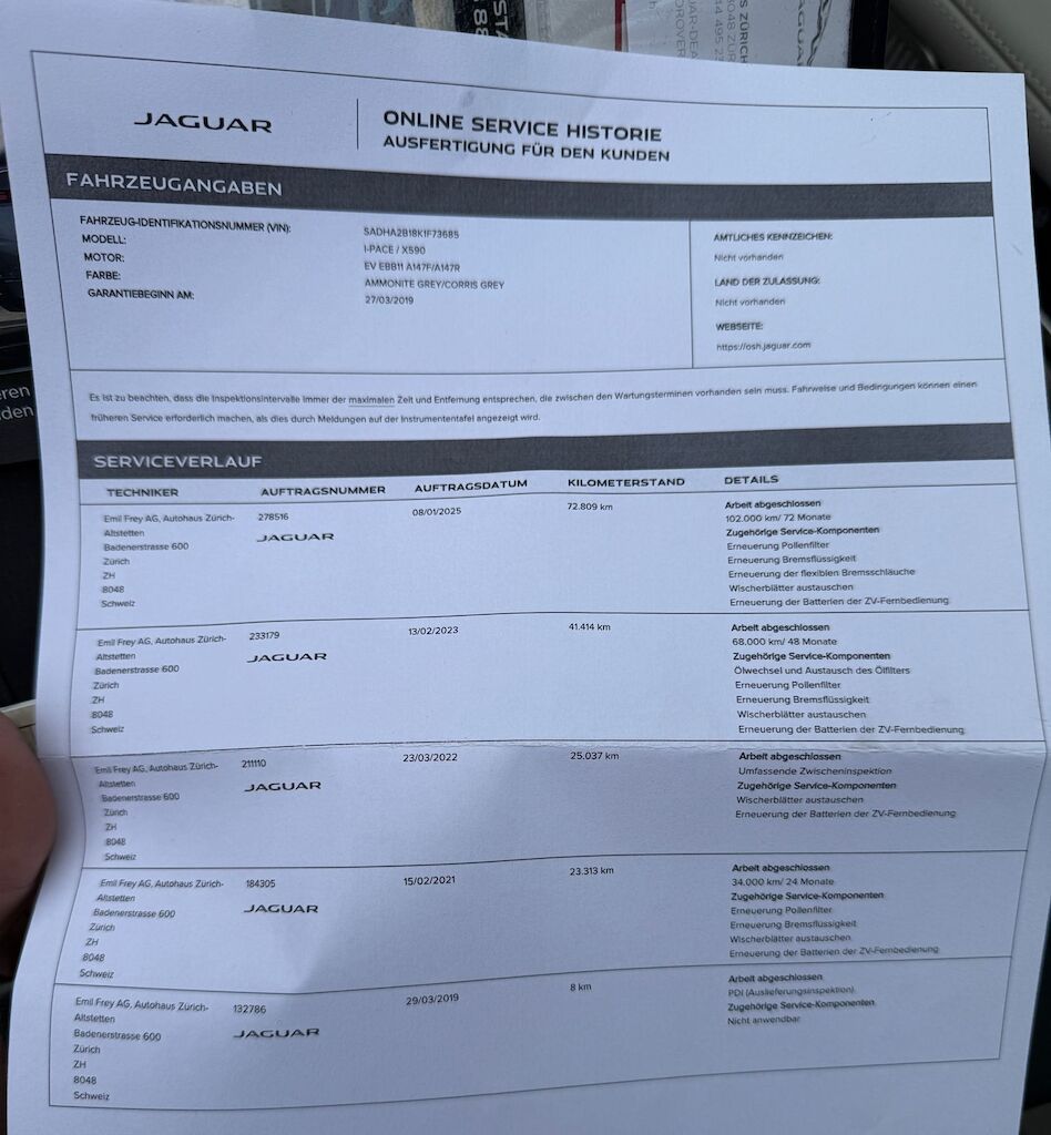 Keine Gewähr auf die Angaben der Sonder- und Serienausstattung / keine mechanische Prüfung. Fahrzeug wurde unzerlegt expertisiert / keine Haftung für allfällige, nach Demontage bekanntwerdenden Mängel. Fahrzeugbereifung und Ausstattung gemäss Fotos / Fahrzeugkauf auf eigenes Risiko ab Platz ohne Nachwährschaft.- Diverse Kratzer und Dellen am gesamten Fahrzeug.- Steinschlag Frontscheibe- Steinschlag Kotflügel vorne rechts- Letzter Service am 08.01.2025 bei 72'809 Km.