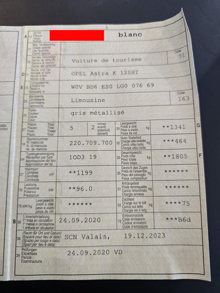 OPEL Astra K 12SHT
