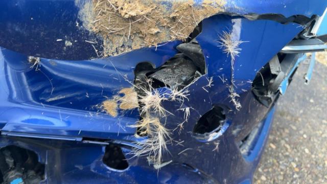 Front eingedrückt. Kotflügel vorne rechts eingedrückt. Motorhaube eingedrückt. Frontblech/Maskenblech eingedrückt.