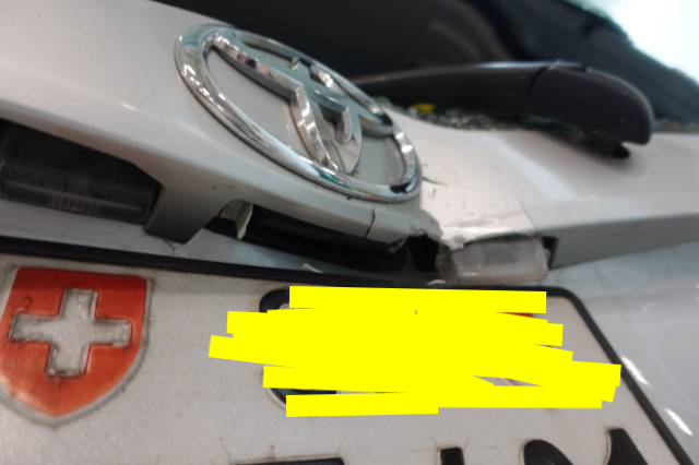 Beschreibung der Schäden: Heckklappe eingedrückt Stossstange hinten eingedrückt und zerkratzt, Heckscheibe verschlagen.