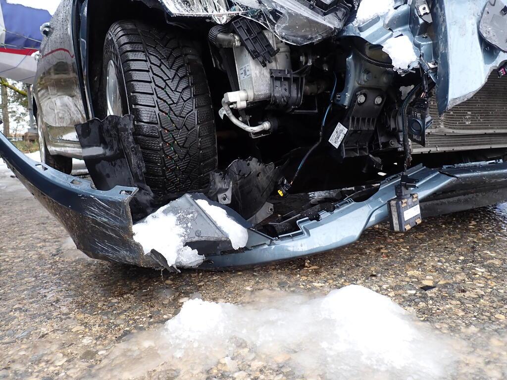 Choc frontal avant droit Avant droit du véhicule entièrement détruit. Documents du véhicule disponibles. Le véhicule ne peut pas rouler. Le moteur ne démarre pas, cause inconnue. Côté droit endommagé. Choc sur le montant A droit. Partie avant droite, demi essieu avant droit, tous les radiateurs endommagés. Capot moteur refoulée. Tôle frontale enfoncée. Passage de roue avant droite enfoncé et refoulé. Renfort de longeron avant droit refoulé. Partie avant déplacée vers la gauche. Risque sur le moteur, la boîte de vitesses, le différentiel, la direction, le berceau moteur, les phares. Ceintures de sécurité déclenchées.