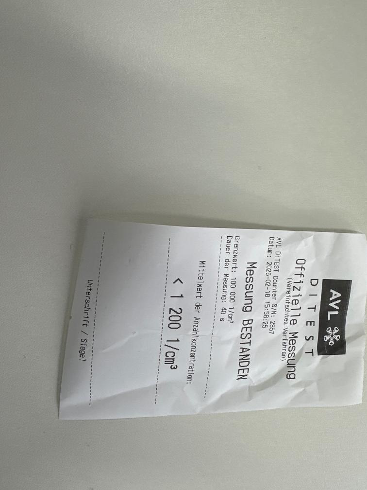 Dieselpartikelfiltertest wurde erfolgreich durchgeführt (Schriftlicher Ausdruck ist vorhanden).