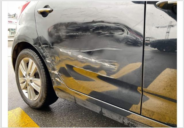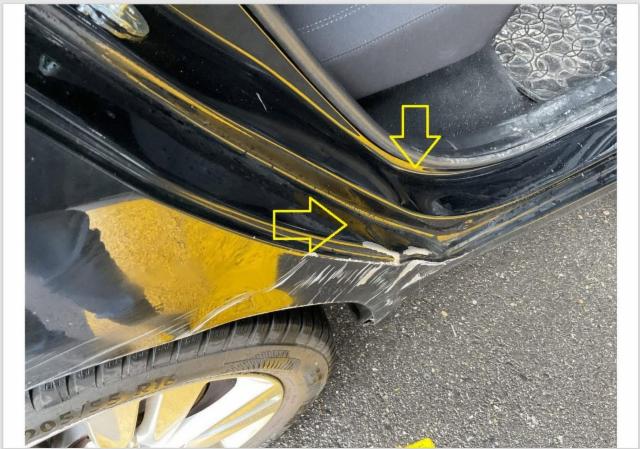 Schweller rechts ist eingedrückt. Tür hinten rechts ist eingedrückt.
