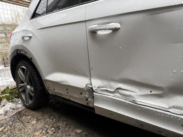 Rechte Seite beschädigt. Tür vorne rechts ist eingedrückt. Tür hinten rechts ist eingedrückt.
