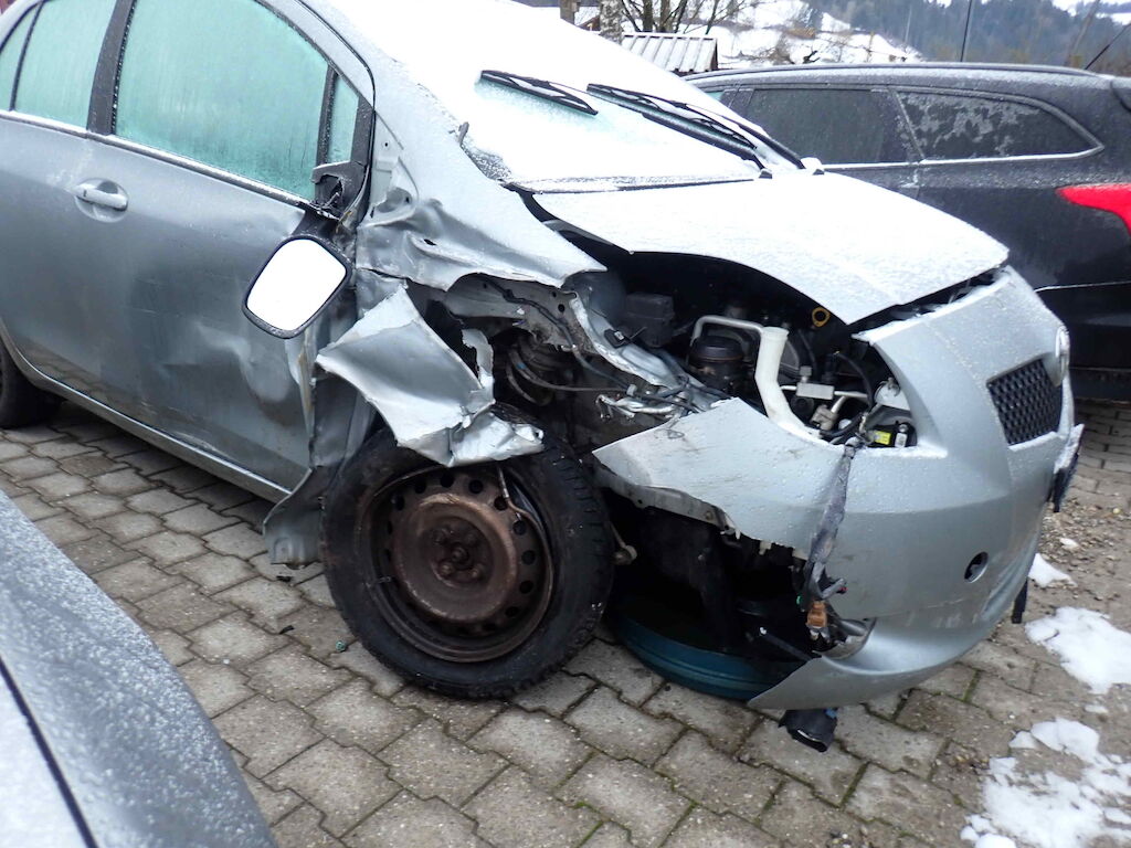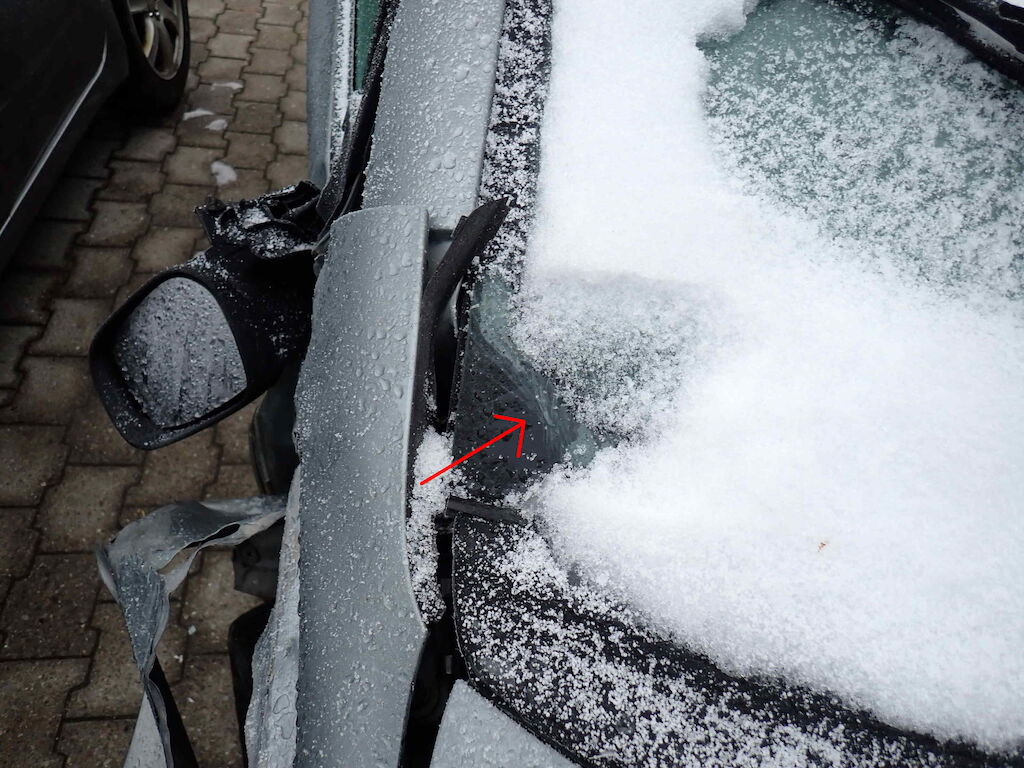 - Frontscheibe gebrochen - Motorhaube deformiert - A Säule rechts stark deformiert - Stosstange vorne gerissen - Flüssigkeitsverlust Motorraum/Kühlerpartie - Scheinwerfer rechts gebrochen - Scheibenwaschbehälter gebrochen - Längsträger VR stark deformiert - Kotflügel VR gerissen - Radaufhängung VR gebrochen und verzogen - Aussenspiegel rechts gebrochen - Türe VR stark deformiert - Heckscheibe gebrochen - Heckklappe stark deformiert - Stosstange hinten gebrochen - Einparkhilfesensoren gebrochen - Heckblech sehr stark deformiert Motor Getriebe Vorderachse Hinterachse Airbags ausgelöst: 0 unbekannt ( Abfallcode 16.01.04ak )