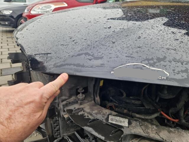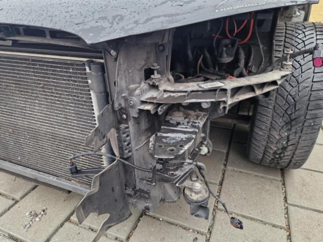Front links eingedrückt. Kotflügel vorne links eingedrückt. Motorhaube eingedrückt. Frontblech/Maskenblech eingedrückt. Fahrzeugvorbau verschoben.