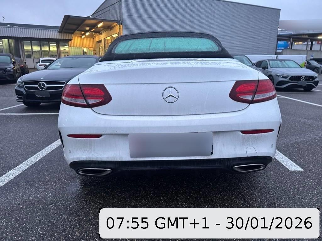 Kommunikationsmodul, Assist: Notrufsystem, Media: Kommunikationsmodul (LTE), Zweiflutige Abgasanlage mit eckigen, im Stossfänger intergrierten Endrohrblenden, Ablage-Paket, Servolenkung geschwindigkeitsabhängig, Dekor:Zierelemente Esche schwarz/Aluminium, Lackierung: Uni-Lackierung, Airbag: Airbag Fahrer und Beifahrer, Airbag: Automatische Beifahrerairbag-Abschaltung, Sitze:Vordersitze heizbar, Bremsscheiben vorne gelocht, Fahrwerk:Sportfahrwerk, Verdeck schwarz, Licht: Nebelschlussleuchte, Dekor:Applikationen schwarz glänzend, Airbag: Head-/Thorax-Sidebags, Antiblockiersystem (ABS), Allradantrieb permanent, AIRCAP automatisches Windschott, Media:Audio 20 USB Multimediasystem, 17,78cm- Farbdisplay, Doppeltuner, 2 USB, zentra- les Bedienelement, Bluetooth, SD-Karten- anschluss, Elektronisches Stabilitäts-Programm (ESP), Media:Vorrüstung für Garmin MAP PILOT inkl. Live Traffic Information, KEYLESS GO Start Funktion, Airbag: Seiten- und Beckenairbag (Pelvisbag) für Fahrer und Beifahrer, Fahrzeug Monitoring, Assist: Transparente Motorhaube, Räder:TIREFIT mit Reifenfüllkompressor, Media: Real Time Traffic Information, Assist: Tempomat mit variabler Geschwindigkeitsbegrenzung SPEEDTRONIC, Räder:AMG Leichtmetallräder im 5-Speichen- Design 18J, Titangrau lackiert und glanz gedreht, Sitze:Gurtbringer elektrisch vorne, Licht: LED Heckleuchten, Polster:Polsterung Ledernachbildung ARTICO / Microfaser DINAMICA, Kraftstofftank 66 Liter, Lenkrad:Leder-Multifunktionslenkrad im 3-Speichen-Design, Getriebe:9-Stufen-Automat sequentiell, Regensensor für Scheibenwischer vorne, Assist: COLLISION PREVENTION ASSIST PLUS, Fahrwerk:AGILITY CONTROL-Fahrwerk mit selektivem Dämpfungssystem und Tieferlegung, Sitze:Sitzkomfort-Paket, Adaptive Gurtkraftbegrenzern aussen hinten, Fahrwerk:Komfort-Direktlenkung, Airbag:Seitenairbags hinten, Licht: LED High Performance-Scheinwerfer, Media: Digitaler Radioempfang (DAB/DAB+), Bremsanlage mit Logo, Katalysator geregelt, Beide Make up-Spiegel beleuchtet, Assist:Reifendruck-Kontrollanzeige, Lenkrad:Sportlenkrad, Wegfahrsperre elektronisch, Airbag: Knie-Airbag für Fahrer, Kombiinstrument mit Multifunktions- display, Garantie: MERCEDES-SWISS-INTEGRAL Paket Garantie: 3 Jahre oder 100'000 km Gratis-Service: 10 Jahre oder 100'000 km (ab 1. Inv.), Klima: Klimatisierungsautomatik THERMATIC mit 2-Klimazonen, Akustikverdeck, Pollenfilter (Staubfilter), DYNAMIC SELECT Schalter