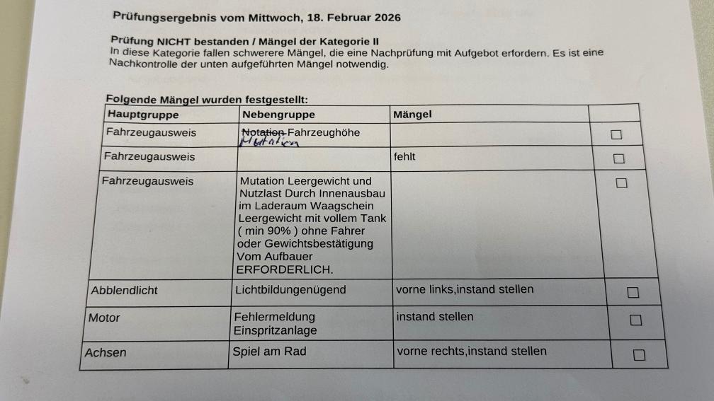 Fahrzeug is nicht durch die MFjK gekommen. (Sie Prüfbericht). Zustand siehe Bilder. Fahrzeug wird mit Innenausbau (aber ohne Inventar) und dem Dachträger verkauft. Am Fahrzeug wurde kein Werkstatttest gemacht (Für sichtbare oder nicht sichtbare Mängel wird nicht gehaftet). Wir testen & kontrollieren nicht alle Funktionen vom Fahrzeug. Das Risiko liegt somit vollumfänglich beim Käufer. Nachdem der Höchstbietende den Zuschlag erhalten hat, gibt es keine Nachverhandlung, auch wenn nicht deklarierte Mängel zum Vorschein kommen sollten.
