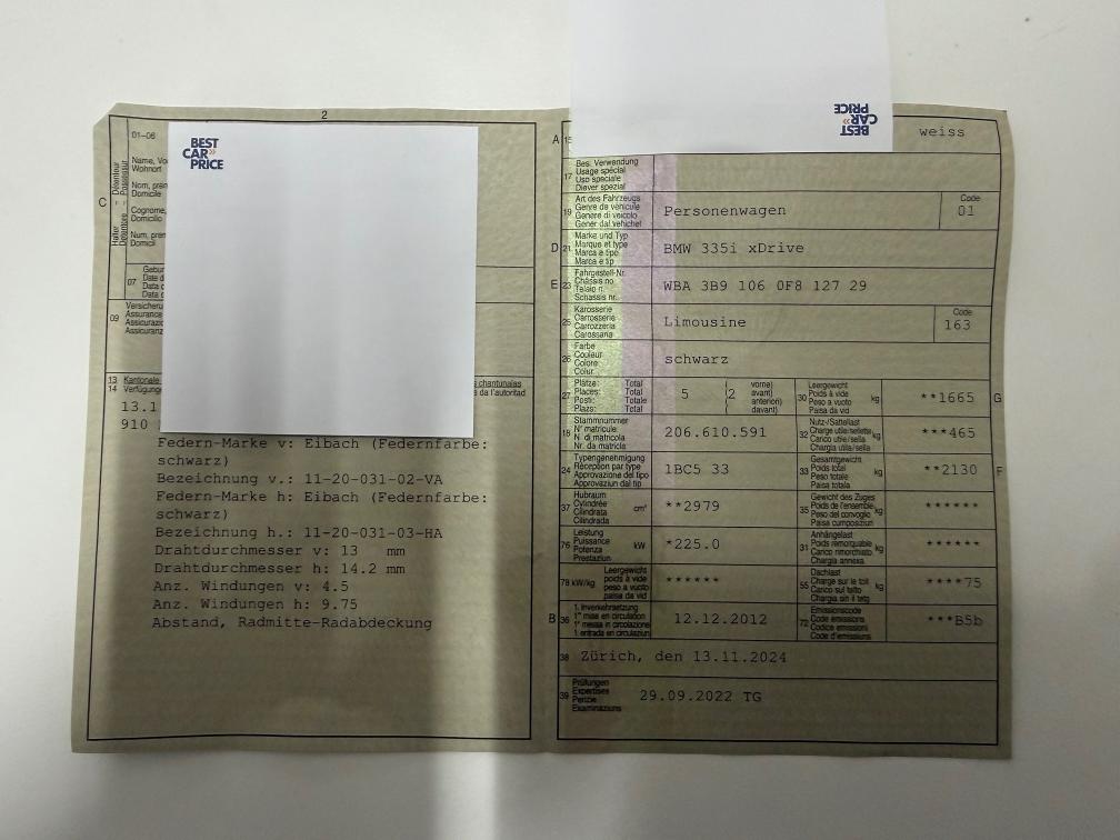 Sehr schöner BMW 335i xDrive (M3 Look) wurde alles umgebaut. • 3.0-Liter Reihensechszylinder Turbo • xDrive Allradantrieb • Automatikgetriebe • M-Sport Optik (Carbon innen & aussen. Lenkrad, Einstiegsleisten etc.) • Rückfahrkamera • Parksensoren vorne & hinten • Navigationssystem (iDrive) • Leder-Innenausstattung schwarz • Klimaautomatik • Tempomat • Multifunktions-Sportlenkrad mit Schaltwippen • Leichtmetallfelgen • Elektrische Fensterheber & Spiegel • ISOFIX • Zentralverriegelung mit Fernbedienung Lieferung möglich schweizweit gegen 300 CHF Keine Nachverhandlungen vorort.