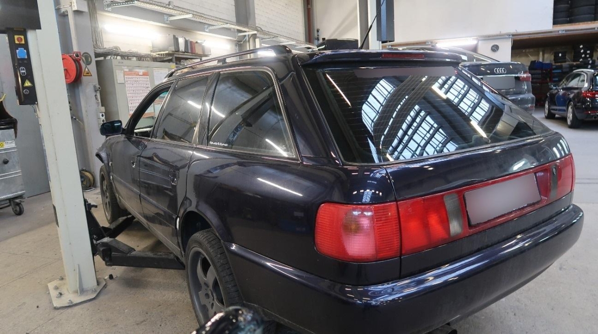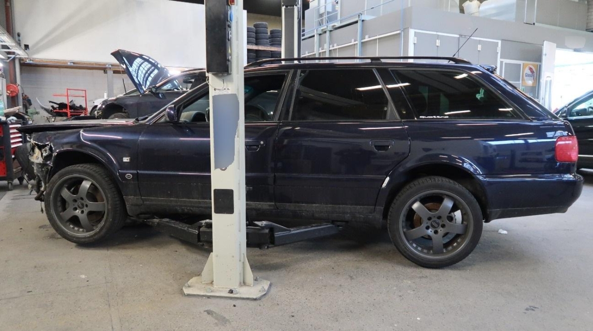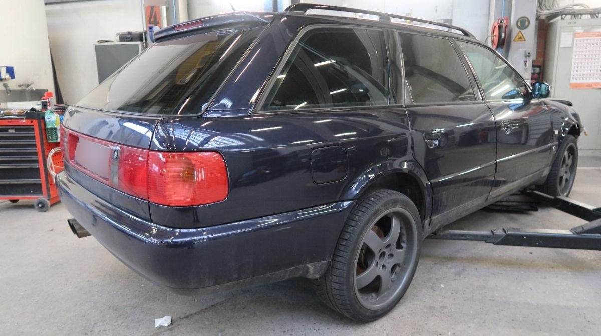 Achsträger, Antrieb, Armaturenbrett, Auspuffanlage, Dach, Federbein vorne rechts, Frontscheibe, Heck, Interieur, Kofferraumboden, Längsträger hinten links, Längsträger hinten rechts, Radaufhängung hinten links, Radaufhängung hinten rechts, Radaufhängung vorne rechts, Radhaus hinten links, Radhaus hinten rechts, Rücklicht links, Rücklicht rechts, Schweller links, Schweller rechts, Seitenwand links, Seitenwand rechts, Stossstange hinten, Türe hinten links, Türe hinten rechts, Türe vorne rechts, Wagenboden
