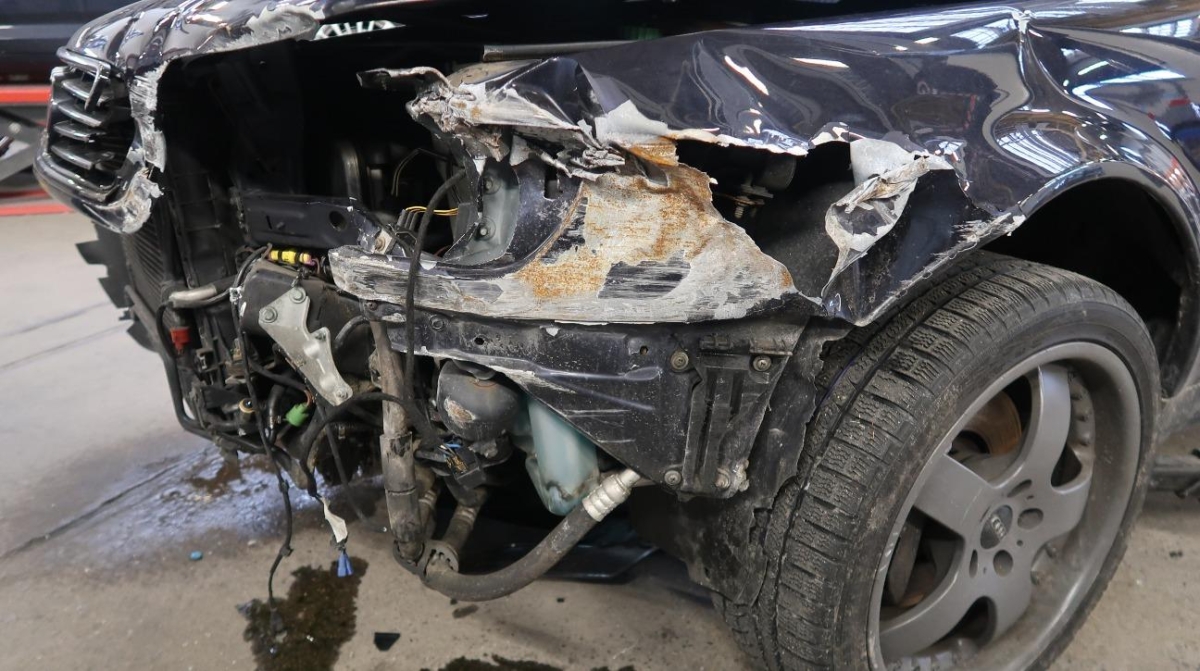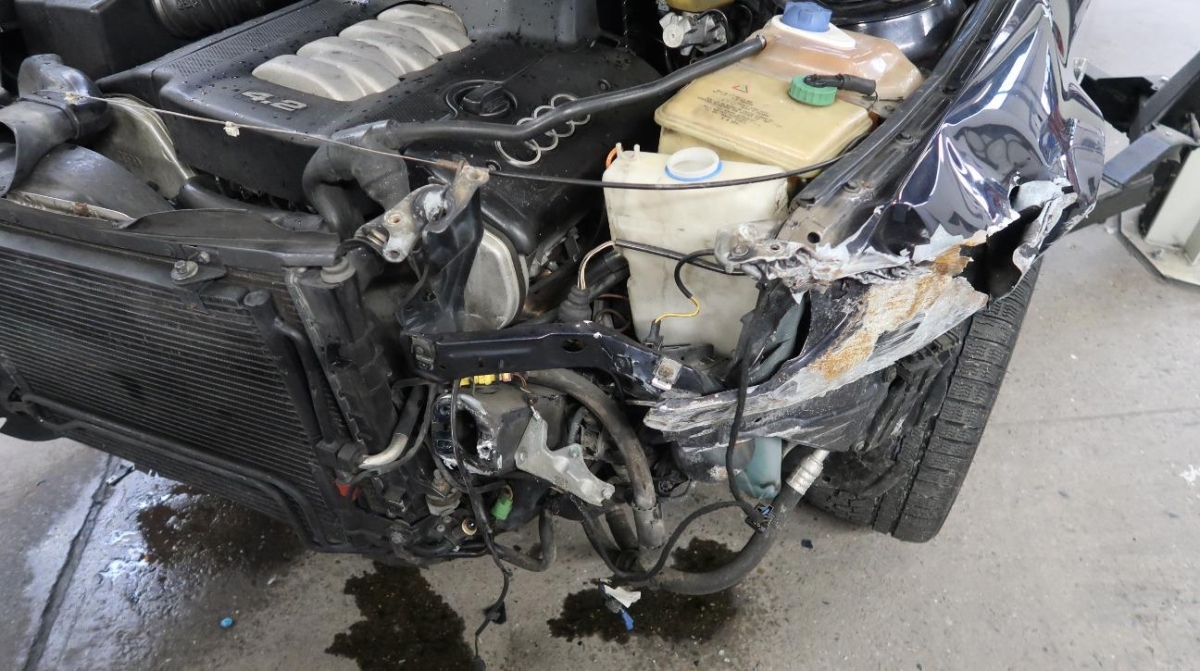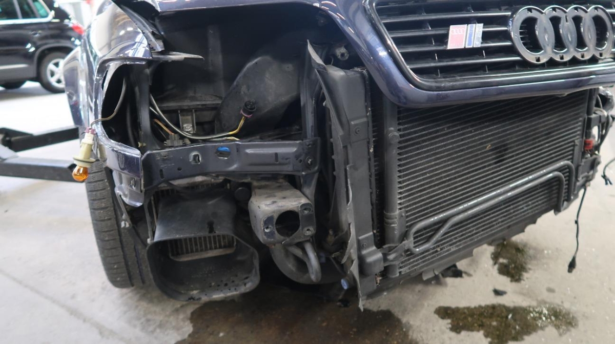 Diverse Anbauteile, Federbein vorne links, Front, Front links, Front rechts, Frontblech, Klimakühler, Kotflügel links, Kotflügel rechts, Kühler, Kühlgitter, Lenkung, Längsträger vorne links, Längsträger vorne rechts, Motorhaube, Querträger, Rad vorne links, Radaufhängung vorne links, Radhaus vorne links, Radhaus vorne rechts, Scheinwerfer links, Scheinwerfer rechts, Schlossträger, Stosstange vorne, Türe vorne links, Vorderachse