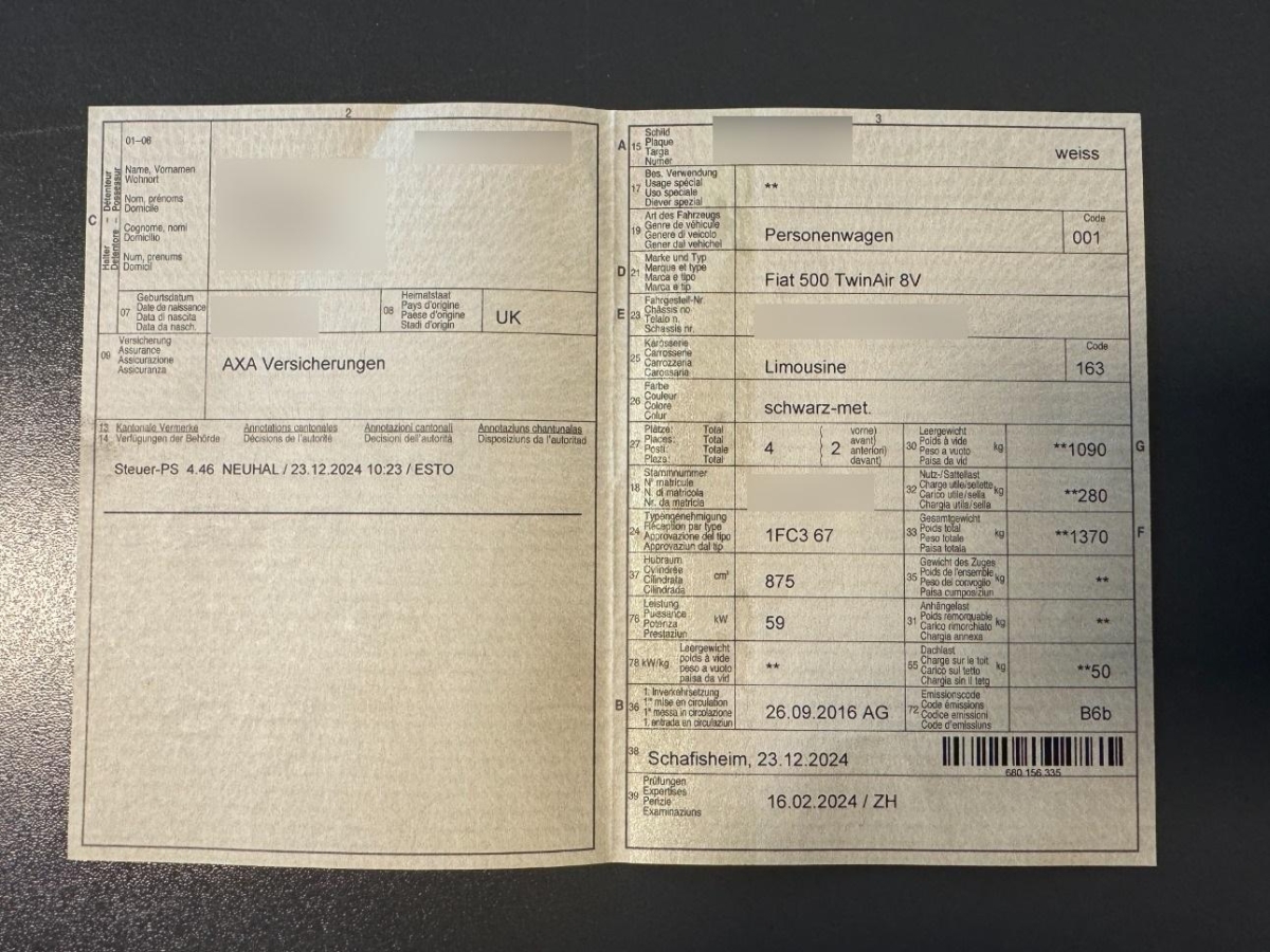 Sitze: Fahrersitz höhenverstellbar, Getönte Scheiben, Wärmeschutzverglasung, Beifahrersitz mit mechanischem Positionsspeicher (Easy-Entry), Abblendlichtausschaltverzögerung 'Follow me home', Seitenfenster-Zierleisten verchromt, ISOFIX Kindersitzvorrichtung, Klimaanlage, Pollenfilter (Staubfilter), Licht: Tagfahrlicht, Elektronischer Bremskraftverteilung EBD, Airbag: Knie-Airbag für Fahrer, Warnblinkautomatik bei Vollbremsung, Scheibenwischer vorne mit Intervall, Chrom-Paket, 4 Leichtmetallfelgen 15J mit Pneu, Lenkrad: Lenkrad höhenverstellbar, Uconnect Touchscreenradio mit 7'' Bildschirm, USB, AUX-IN, Bluetooth Audiostreeming, DAB+, 6 Lautsprecher, Kartentasche an der Rückenlehne, Heckscheibenheizung, Antiblockiersystem (ABS), Gurtkontrolle, Steckdose 12V, Elektronisches Stabilitäts-Programm (ESP), Komfortblinker, Wegfahrsperre elektronisch, Bordcomputer, Gurtstraffer vorne, Aussenspiegel rechts und links beheizbar und elektrisch verstellbar, Make up-Spiegel beleuchtet für Beifahrer, Katalysator geregelt, Panorama-Glasdach, Uni-Lackierung, Kopfstützen hinten höhenverstellbar, Rücksitzlehne geteilt abklappbar, Berganfahrhilfe (Hill Holder), Drehzahlmesser, Servolenkung, Kopfstützen vorne höhenverstellbar, Tageskilometerzähler, Getriebe: 5-Gang-Getriebe, Licht: Drittes Bremslicht, Räder: Reifenpannen-Kit, Stossstangen verchromt, 3-Punkt-Sicherheitsgurte auf allen Plätzen, Airbag: Window-Kopfairbags, Elektrische Fensterheber vorne, Zentralverriegelung mit Fernbedienung und automatischer Türverriegelung, Licht: Nebelschlussleuchte, Start/Stop-Funktion, Polster: Stoffsitze, Airbag: Airbag Fahrer und Beifahrer inkl. Seitenairbags, Assist: Bremsassistent (BAS), Heckscheiben-Wisch-/Waschanlage, Auspuffblende, verchromt, Tankdeckel abschliessbar, Anti-Submarining, Multifunktionslenkrad in Leder, Räder: Reifendruck-Kontrollanzeige, Assist: Antriebsschlupfregelung (ASR), Türgriffe aussen verchromt, Haltegriff für Beifahrer