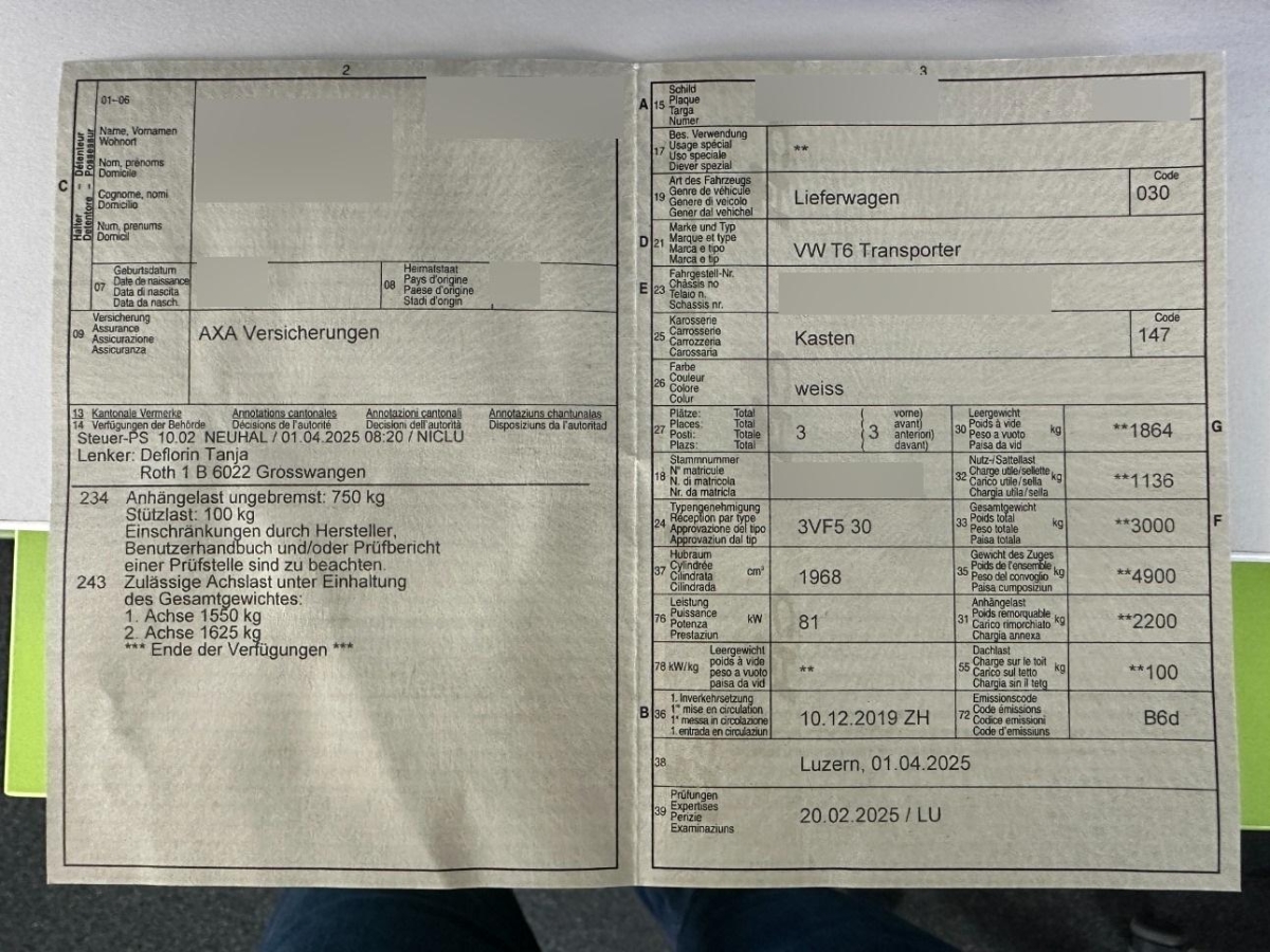 Reifenreparatur-Set mit Kompressor, Gurtstraffer vorne, Dachverkleidung, Heckscheiben-Wisch-/Waschanlage, Servolenkung, Motor Start-/Stop-Anlage, 2. Schlüssel mit Funkfernbedienung, Ablagefach im Dachbereich, Dachverkleidung im Laderaum, Elektrische Fensterheber vorne, Multikollisionsbremse, Elektronisches Stabilitäts-Programm (ESP), Fahrersitz manuell einstellbar, Lenkradsperre, Mittelkonsole mit Ablagefach, Stahlräder 16J, LED-Beleuchtung für den Ladebereich, Lenkrad verstellbar, 5-Gang-Getriebe, Digital Uhr, Heckscheibenheizung, Stoff-Ausstattung, Türen: Schiebetüre rechts, Befestigungsösen im Laderaum, Zentralverriegelung mit Fernbedienung, Antriebsschlupfregelung (ASR), Partikelfilter und Oxydationskatalysator, Wegfahrsperre elektronisch, Höhenverstellbare Gurten vorne, Licht: Drittes Bremslicht, Leuchtweitenregulierung von innen, Scheibenwischer vorne mit Intervall, Gummiteppich im Fahrerhaus, Innenspiegel abblendbar, Media: Mobiltelefon-Schnittstelle, 3 Sitzplätze vorne, Beifahrer Doppelsitzbank, Vorbereitung für Anhängevorrichtung, Halogen-Doppelscheinwerfer H7, 17" Scheibenbremsen vorn und 16" Scheibenbremsen hinten, Uni-Lackierung, Ablagen in den Türen, Radio Composition Audio, Licht: Nebelschlussleuchte, Tagfahrlicht, 3-Punkt-Sicherheitsgurte auf allen Plätzen, Laderaumtrennwand mit Fenster, Elektronische Differentialsperre (EDS), Wärmeschutzverglasung, Airbag Fahrer und Beifahrer, Heckklappe mit Scheibenwischer, Drehzahlmesser, Tageskilometerzähler, Kraftstofftank 70 Liter, 2 Lautsprecher, Antiblockiersystem (ABS), Steckdose, Aussenspiegel rechts und links beheizbar und elektrisch verstellbar, Berganfahrassistent, Arbeitsbeleuchtung im Laderaum