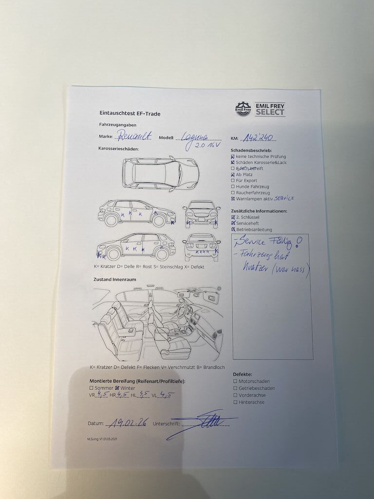 Keine technische Prüfung (Werkstatttest) vorgenommen Diverse Schäden an Karosserie/Lack. Fahrzeug ab Platz, ohne Garantie und Aufbereitung. Es leuchten Warnlampen während des Betriebs. Motor Getriebe Vorderachse Hinterachse Airbags ausgelöst: 0 unbekannt ( Abfallcode 16.01.04ak )