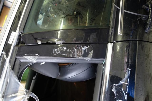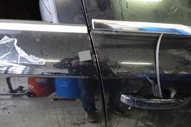 Tür vorne rechts ist eingedrückt. Tür hinten rechts ist eingedrückt.