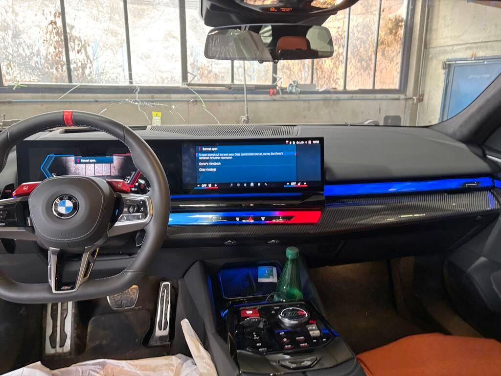 Brake Energy Regeneration, Lackierung: Uni-Lackierung, Türen: Automatische Heckklappenbetätigung Fernöffnen mit Schlüssel, Schliessen über Heckklappentaster und Fernbedienung., Sitze: Sitzheizung für Fahrer und Beifahrer, Fahrwerk: xDrive, Antiblockiersystem (ABS), Paket: BMW Iconic Glow Exterieurpaket Optisches Exterieur-Hightlight: - Inszenierung der BMW Niere durch Konturbeleuchtung - aktiv in Fahrzeugruhe und während der Fahrt - Technik im deaktivierten Zustand nicht sichtbar - zusätzlich inszeniert der Welcome Light Carpet im Ein- und Ausstiegsbereich links und rechts durch Lichtprojektion eine ambiente Lichtgrafik (integrierte Lichtquelle im Seitenschweller links und rechts), Räder: 20"/21" M Leichtmetallräder Doppelspeiche 951 M Bicolor Midnight Grey mit Mischbereifung - Vorn: 10,5 J×20/Bereifung 285/40 ZR 20 - Hinten: 11 J×21/Bereifung 295/35 ZR 21, Media: Personal eSIM, Mittelarmlehne hinten, Media: Ablage für Wireless Charging - drahtloses Laden eingelegter Geräte mit dem Ladestandard Qi - NFC-Schnittstelle zum Fahrzeug - aktive Gerätekühlung integriert, Schliessystem mit Zentralverriegelung inklusive 2 Fernbedienungen mit integriertem Schlüssel, Assist: Aufmerksamkeitsassistent, ab 70 km/h aufwärts, Ambientes Licht, Airbag: Seitenairbag für Fahrer und Beifahrer, Assist: Active Guard - Spurverlassenswarnung mit aktiver Rückführung - Frontkollisionswarnung mit Bremsfunktion für Personen/Radfahrer inkl. Abbiegen und an Kreuzungen - Linksabbiegewarnung (Fahrzeug) mit Bremsfunktion - Speed Limit Info inkl. Vorausschau und Überholverbotsanzeige sowie der manuelle Speed Limit Assist, Media: Smartphone Integration, Media: BMW Live Cockpit Professional - Anzeigeverbund bestehend aus einem volldigitalen Instrumentendisplay mit 12,3" und einem hochauflösendem Control Display mit 14,9" - BMW Operating System 8 - Full-Color Head-Up Display mit konfigurierbaren HUD-Inhalte - Navigationsfunktion - Intuitive Bedienmöglichkeiten - Fahrerprofil - Tuner mit Diversity-Empfang und RDS - USB-Anschlüsse - Bluetooth / WiFi Schnittstelle - Remote Software Upgrade, Gesetzlicher Notruf, Sitze: M Multifunktionssitze für Fahrer und Beifahrer - beinhaltet die Funktionen der 'Sitzverstellung, elektrisch mit Memory' (Memoryfunktion auch für Beifahrersitz) und 'Lordosenstütze für Fahrer und Beifahrer', Sitzheizung für Fahrer und Beifahrer - elektrische Einstellung für oberes Lehnensegment, Lehnenbreite, Lordosenstütze, Kopfstütze und Oberschenkelauflage - großflächige Perforation inklusive M spezifischem Nahtbild - beleuchtetes M5 Logo in der Kopfstütze, Komfortzugang - BMW Digital Key Plus - Smartphone als Fahrzeugschlüssel - Entriegeln bei Annäherung, Verriegeln beim Entfernen. - Lichtinszenierung bei Annäherung sowie beim Entfernen. - Fahrzeugbesitzer kann 1 Smartphone und 1 Smartwatch befähigen - Fahrzeugbesitzer kann bis zu 5 Freunde einladen, je Freund kann 1 Smartphone und 1 Watch als Fahrzeugschlüssel aktiviert werden - Komfortzugang für beide physischen Fahrzeugschlüssel, Assist: Akustischer Fussgängerschutz - Künstlich generierter Sound beim elektrischen Fahren bis 30 km/h zum Schutz anderer Verkehrsteilnehmer, Ladekabel Professional (Mode 3) für öffentliches Laden (bis zu 22 kW) AC Laden zu Hause oder unterwegs: - Ladeleistung 22kW, 3-phasig; max. Stromstärke 32A - AC Stecker: Typ, Warndreieck - inklusive Erste-Hilfe-Set, Licht: Drittes Bremslicht, BMW Mobile Care, Media: DAB+ Tuner, BMW Garantie: Repair Inclusive - 3 Jahre/100.000 km Gültigkeit: 3 Jahre oder 100.000 Kilometer - es gilt das zuerst Erreichte, M Sicherheitsgurte - Sicherheitsgurte in schwarz mit M spezifischen Streifen, M Dachhimmel Anthrazit, Dynamische Stabilitätskontrolle (DSC), Teleservices, Sitze: Kindersitzbefestigung ISOFIX, äussere Fondsitze, Mittelarmlehne vorne verschiebbar, Dach in schwarz, Servolenkung geschwindigkeitsabhängig, Assist: Aktiver Fussgängerschutz, Lenkrad: Lenkrad beheizbar, Alarmanlage - zur Überwachung der Türen, Front- und Heckklappe, inklusive Innenraumschutz, Neigungsalarmgeber und Notstromsirene, Paket: Connected Package Professional, Getriebe: Steptronic Sport Getriebe, 8-Gang Automatik, Heckscheibenheizung, Assist: Crash-Sensor, Licht: Dynamische Bremsleuchten, 3-Punkt-Sicherheitsgurte auf allen Plätzen, M Leuchten Shadow Line - Ausführung ausgewählter Elemente der Leuchte in Dunkel, kein Einfluss auf Leuchtfarbe und -intensität., Fussmatten in Velours, M Hochglanz Shadow Line glänzend mit erweiterten Umfängen Ausstattungsumfänge in Schwarz Hochglanz, zusätzlich zu S760A M Hochglanz Shadow Line: - Nierenrahmen und -stäbe - Leiste in Heckleuchte, Assist: Geschwindigkeitsregelung mit Bremsfunktion, BMW IconicSounds Electric Jeder Fahrmodus hat seinen eigenen Sound: - Personal: Ausgewogenes und immersives Soundambiente. Perfekt für jede Fahrsituation - Sport: Prominent und kraftvoll, unmittelbares Soundfeedback des Antriebs - Efficient: The sound of silence – keine zusätzliche Soundinszenierung, nur Stille - Expressive: Avantgarde der Antriebsakustik – Eine künstlerische Neuinterpretation von Fortbewegung - Relax: Eine lebendige und entspannende Soundscape, die auf die Fahrsituation reagiert, Condition Based Service, Innenbeleuchtung - Make-Up-Spiegel-Leuchte - Leseleuchte (vorne und hinten, im Fond mit erweiterten Funktionen als SA) - Handschuhkasten - Innenlicht inkl. Auflicht (vorne und hinten) - Fußraumleuchte (vorne und hinten) - Beleuchtung Ablagefach Mittelarmlehne vorne - Gepäckraumbeleuchtung (mittig) - Zuziehgriffschale, Media: Innenraumkamera - zur Aufnahme von Bildern des Innenraums, Räder: Reifendruck-Kontrolle, Media: ConnectedDrive Services, Airbag: Kopfairbag 1. und 2. Sitzreihe, Fensterheber, elektrisch - Einklemmschutz und Komfortöffnung/-schließung, Regensensor und automatische Fahrlichtsteuerung, Lenkrad: Multifunktion für Lenkrad, Fahrwerk: M Sportdifferential - Aktives M Differenzial - M spezifisch abgest