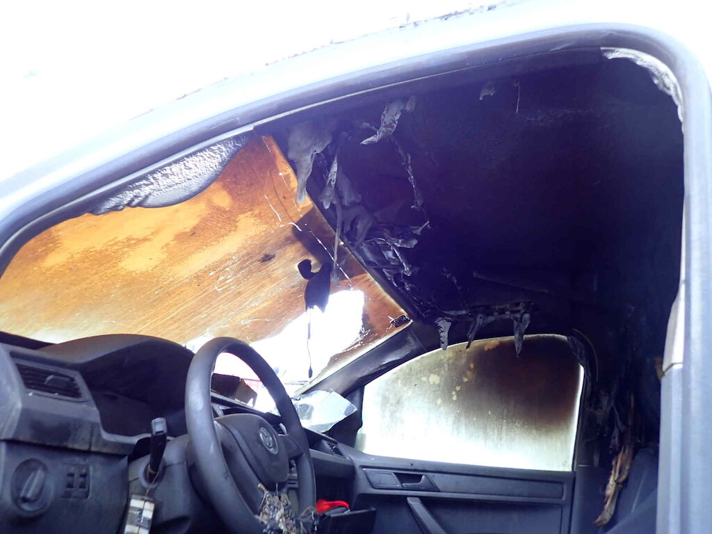 Brand im Heck des Fahrzeuges Motor Getriebe Vorderachse Hinterachse Airbags ausgelöst: 0 unbekannt ( Abfallcode 16.01.04ak )