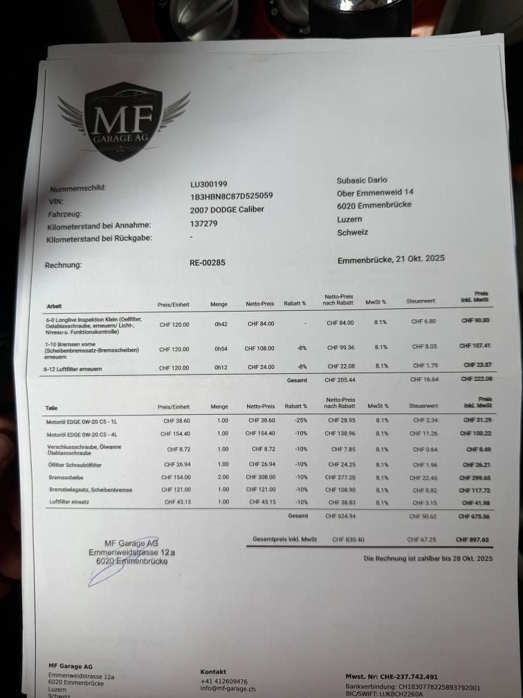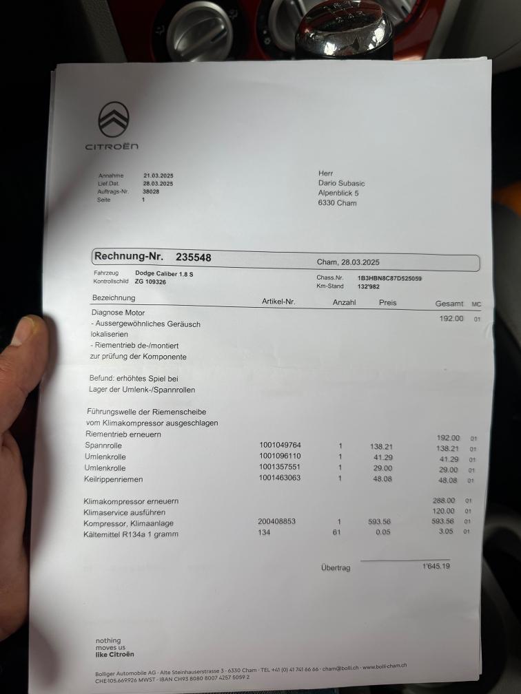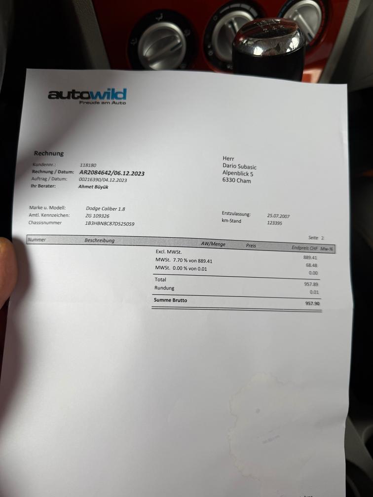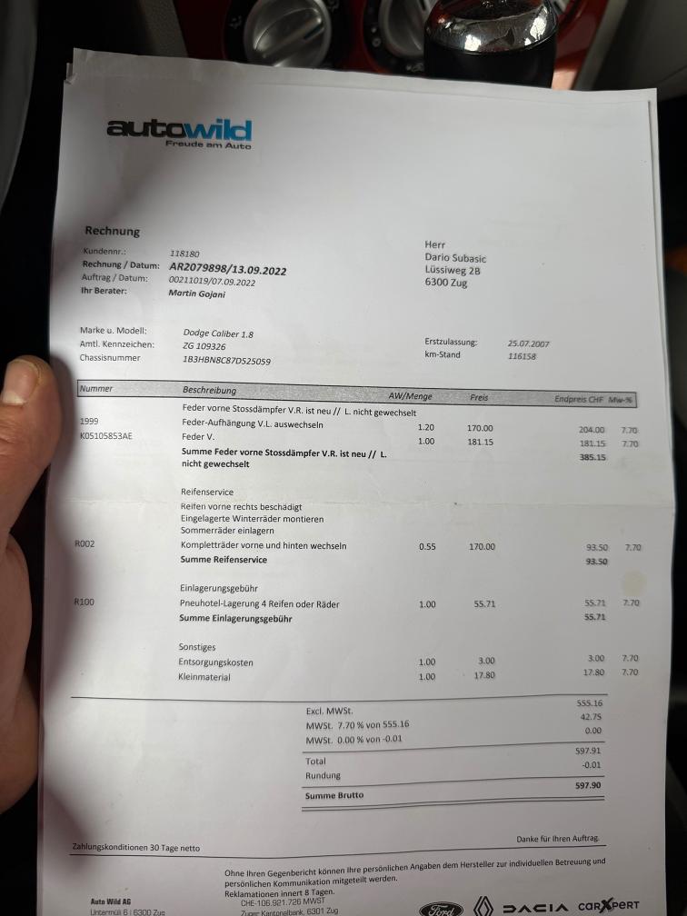 kurze Probefahrt gemacht alles Funktioniert. Fährt sich sehr schön. Stossdämpfer oder Lager vorne macht klack Geräusch beim fahren über Unebenheiten sonst alles ok Sehr viel Geld investiert in letzte Zeit, Rechnungen BEIGELEGT Macht sehr saubere Eindruck Karoserie hat Gebrauchtspuren wie auf dem Bilder ersichtlich ist Am Fahrzeug wurde kein Werkstatttest gemacht (Für sichtbare oder nicht sichtbare Mängel wird nicht gehaftet). Wir testen & kontrollieren nicht alle Funktionen des Fahrzeugs. Das Risiko liegt somit vollumfänglich beim Käufer. Ab Platz ohne Garantie, Wandelung und Minderung werden wegbedungen. Stossstange vorne zerkratzt, Nach erteilte Zuschlag muss Fahrzeug innerhalb 4 Arbeitstage abgeholt und Bar bezahlt werden. Sonst wird Parkplatz CHF 30.- / Tag verrechnet