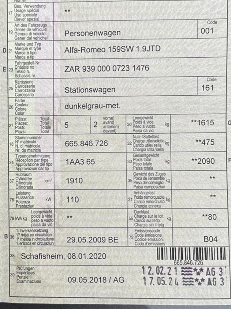 Angaben vom Kunden: Das Fahrzeug ist aus erster Hand. KM-Stand 240'000, vorwiegend Autobahnkilometer Gepflegter Zustand. Fahrzeug wurde regelmässig gewartet. Derzeit ein kleines Geräusch am Zahnriemen, wahrscheinlich von einer Spannrolle kommend. 8-Fach bereift.