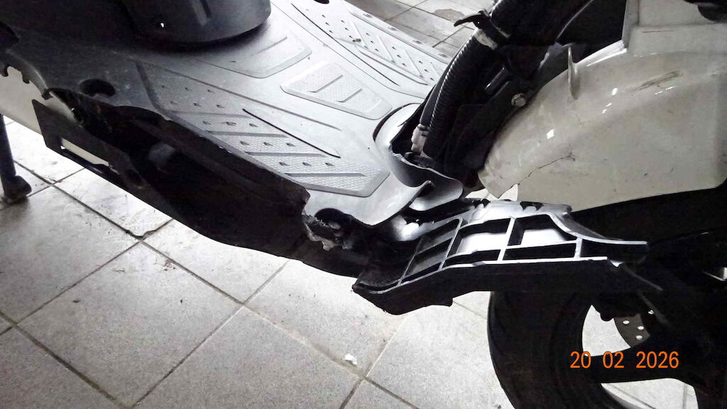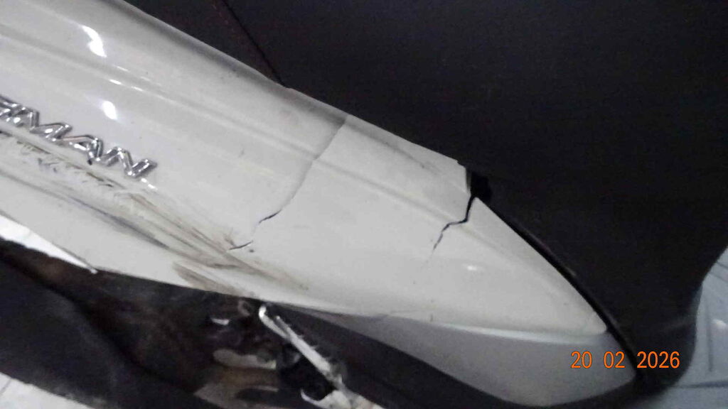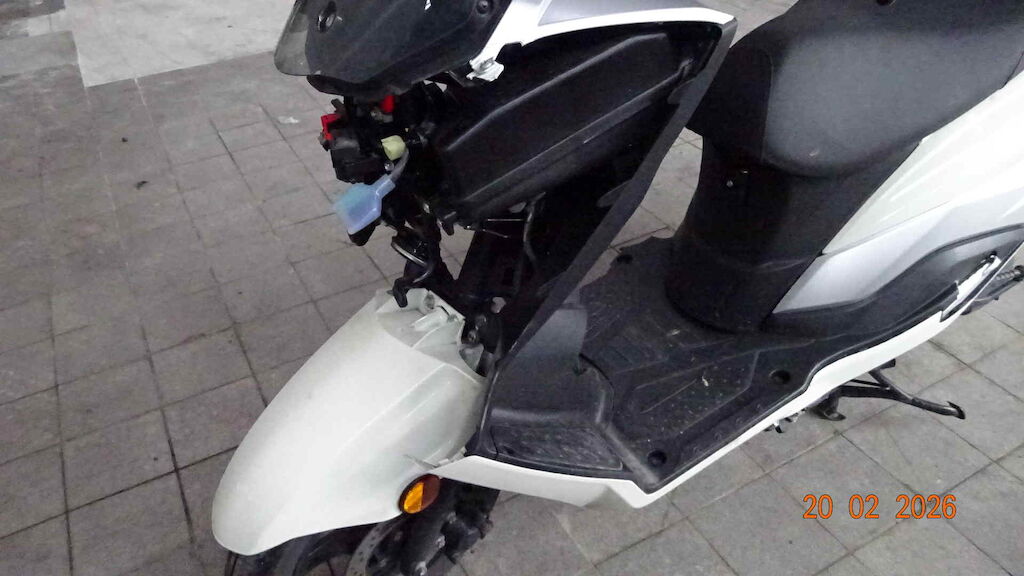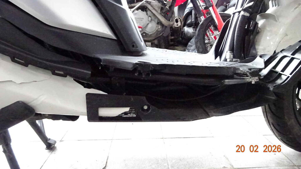 Choc avant droite - Fourche, garde boue, retro, levier frein, carenage avant, tablier, marche pied, bas de caisse, carenage arrière, poignée passager, protection échappement, etc. Motor Getriebe Vorderachse Hinterachse Airbags ausgelöst: 0 unbekannt ( Abfallcode 16.01.04ak )