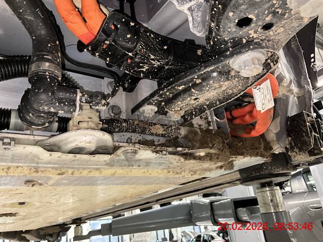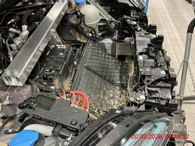 Front: Stossfänger vorne, diverse Sensoren, Abstandsradar, Kühlergrill, Scheinwerfer links und rechts, Schlossträger, Kühler, Motorraumstrebe, Kotflügel links und rechts, Federbeinaufnahme links und rechts, Unterbodenabdeckung, alle Felgen deformiert. Fahrwerk vorne links und rechts verschoben. Fehlermeldung Antriebsbatterie (Kühlung). Laut Fehlerauslesung Status Hochvoltbatterie "Normal". Vorderachse und Hinterachse voll mit Schlamm, Erde. Fahrzeug war nicht stromlos, jedoch "Ready" Kontrolleuchte erschien nicht beim Startvorgang, diverse Fehlermeldungen.