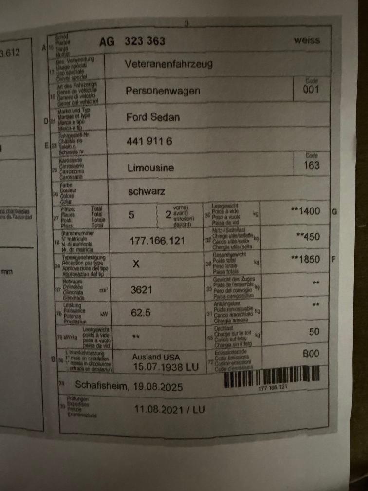 Veteranprüfung im 08.2021 Veteran fährt sich sehr schön Einlösen und losfahren 3 Gang Getriebe Original Lack, Original Motor, Original Interieur Erste Ford V8 Motor TEL 0767307309