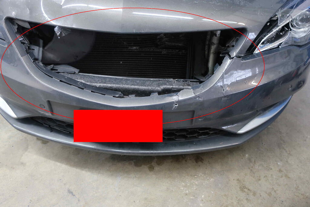 mittlerer Anprall Front: Stossstange, Stossstangenträger, Kühlergrill, beide Scheinwerfer, Motorhaube, Kühlerpacket etc. Motor Getriebe Vorderachse Hinterachse Airbags ausgelöst: 0 unbekannt ( Abfallcode 16.01.04ak )