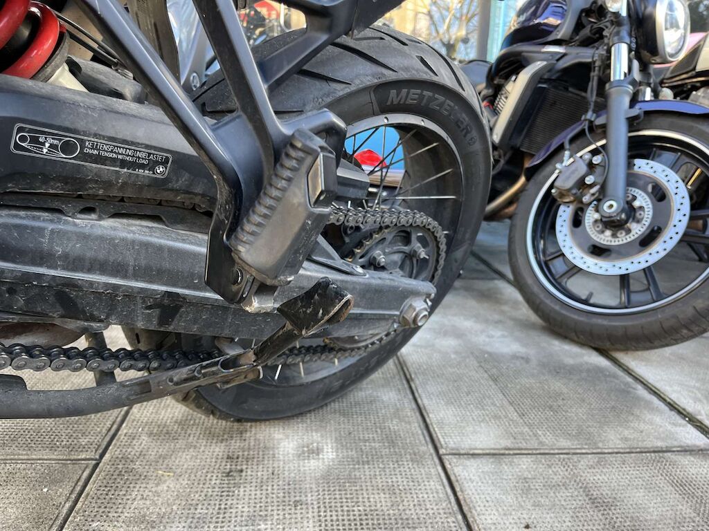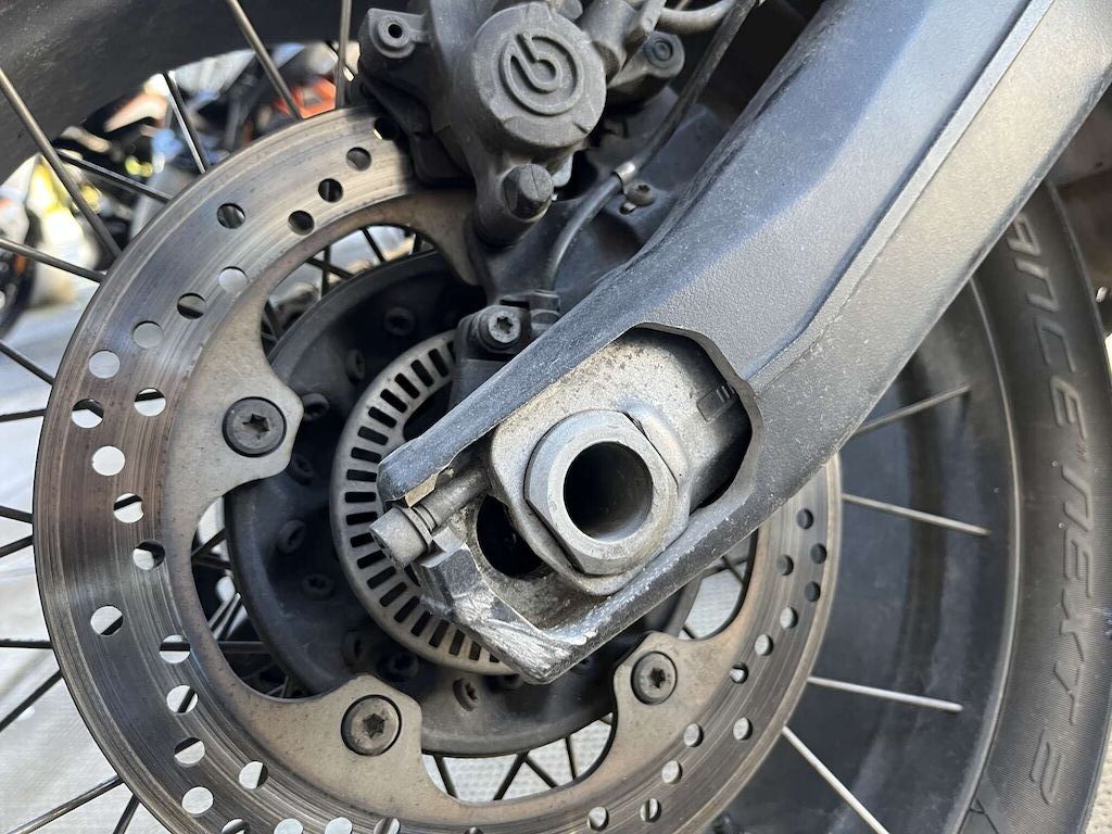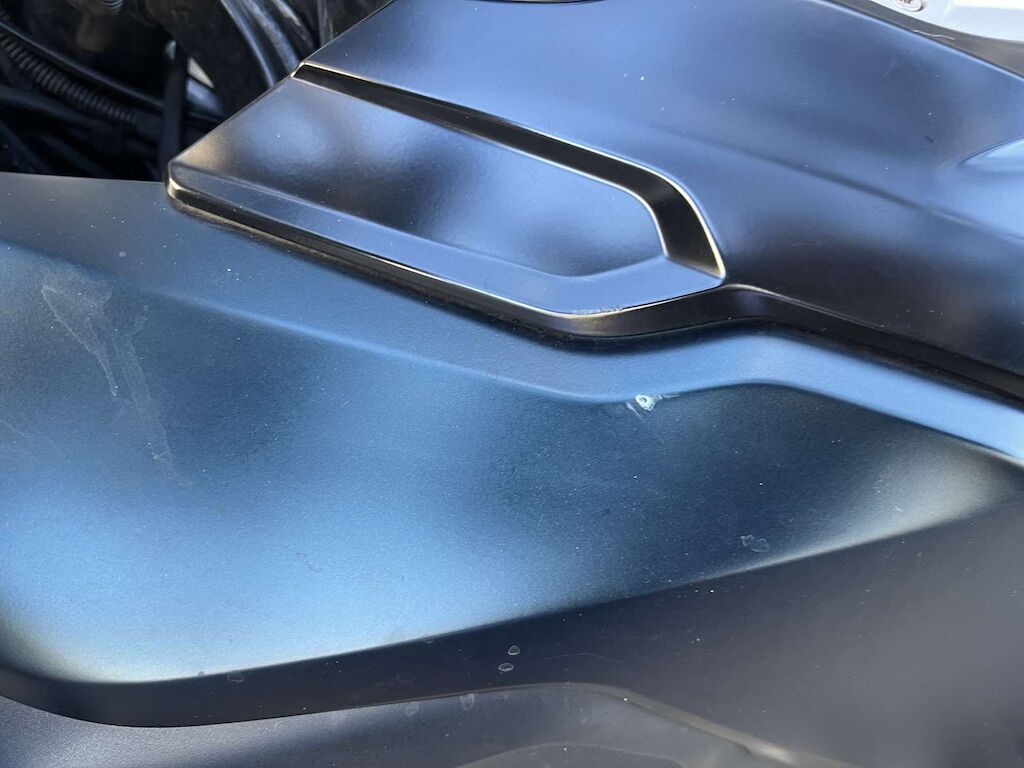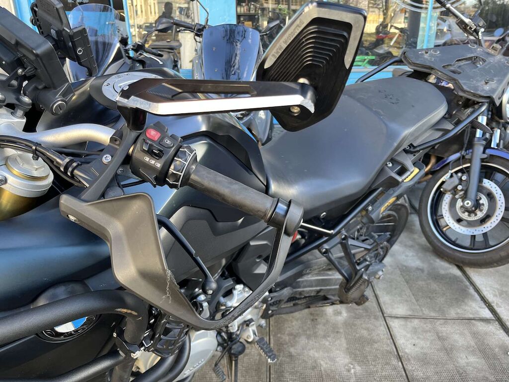 Chute côté gauche et projection côté droit: Rétroviseur, protège main, barre de protection, repose pied gauche, sélecteur de vitesse, béquille, entourage de réservoir endommagés et râpés. Echappement, bras oscillant, repose pied droit, levier de frein arrière, barre de protection, feux brouillard, protège main, rétroviseur et guidon endommagés et râpés. Feu arrière, support de plaque, pare-boue cassé. Motor Getriebe Vorderachse Hinterachse Airbags ausgelöst: 0 Ja ( Abfallcode 16.01.04ak )