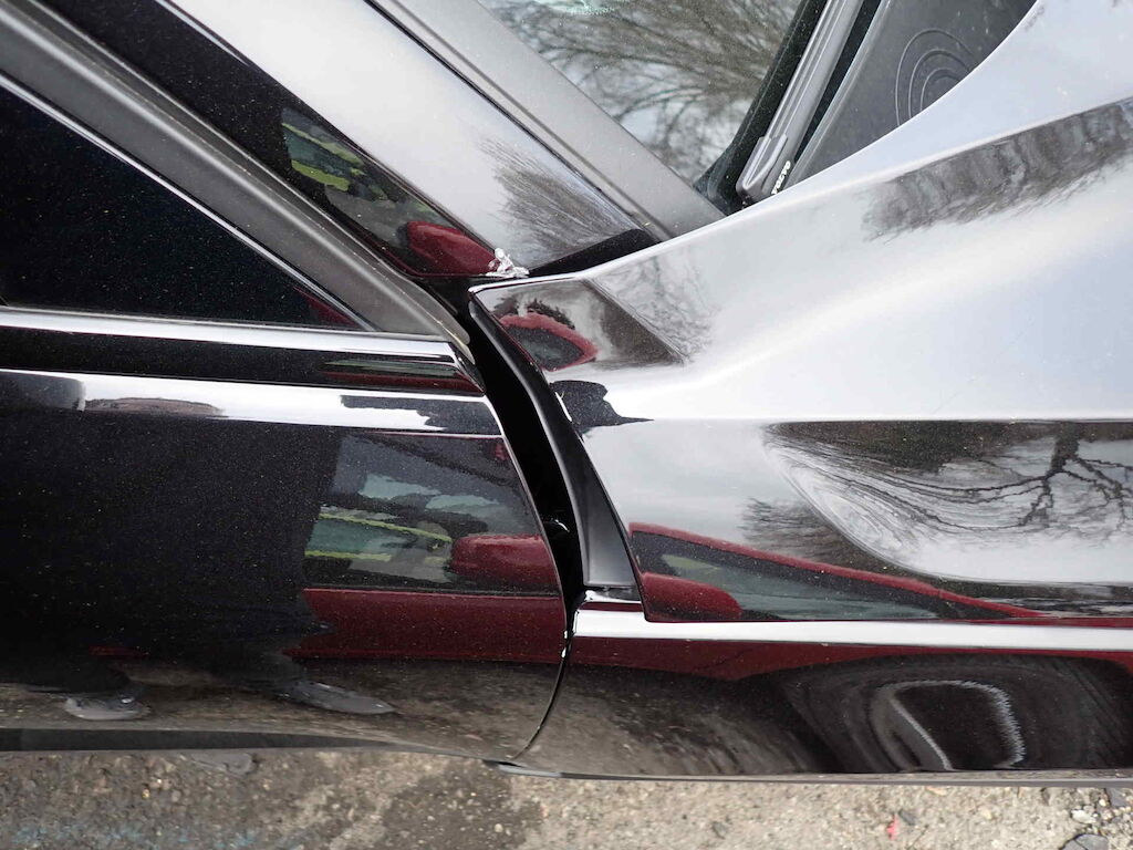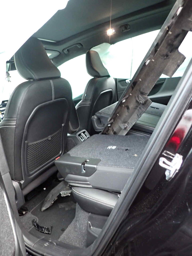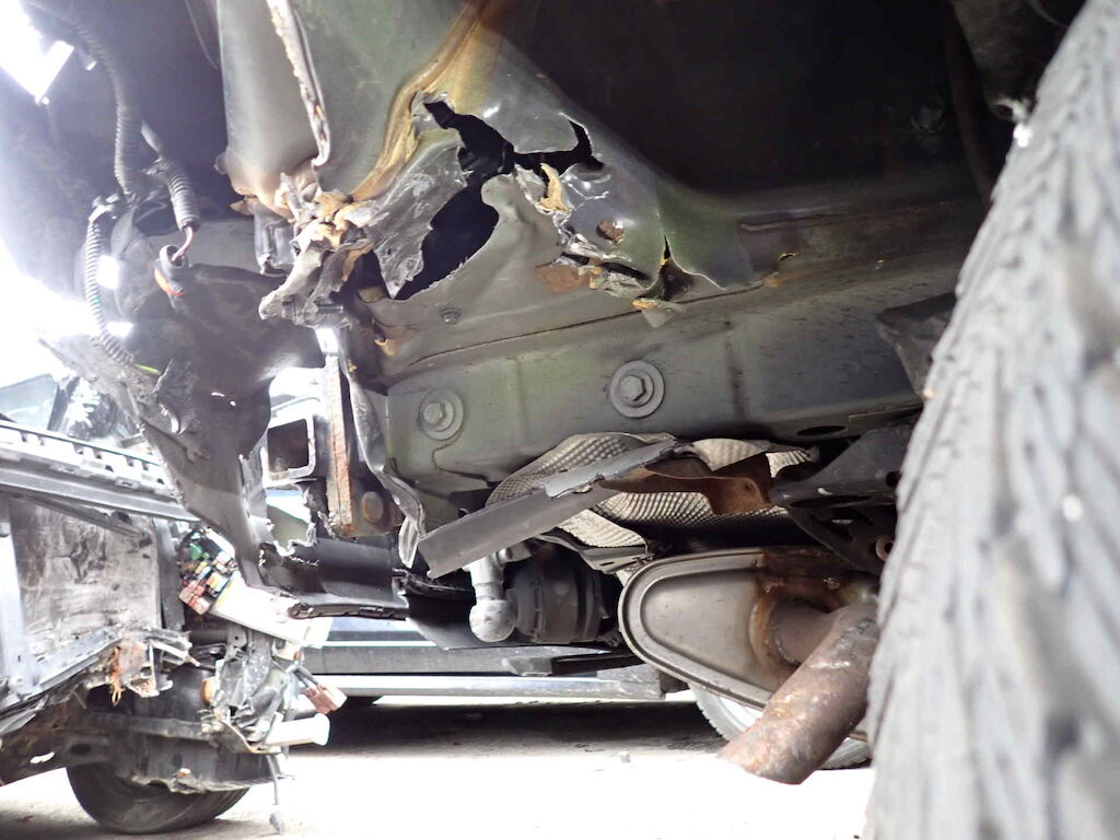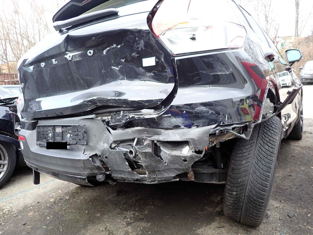 Coffre, pare-chocs AR, feu ARD, aile ARD, essieu ARD, échappement AR et tôle AR endommagésCapot, phare AVD, pare-chocs AVD, aile AVD, porte AVG et montant AVD endommagés