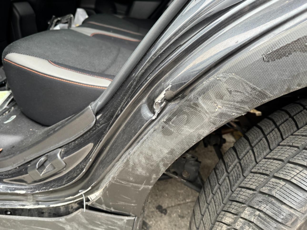 Rad hinten links, Radaufhängung hinten links, Schweller links, Seitenwand links, Stossstange hinten, Türe hinten links