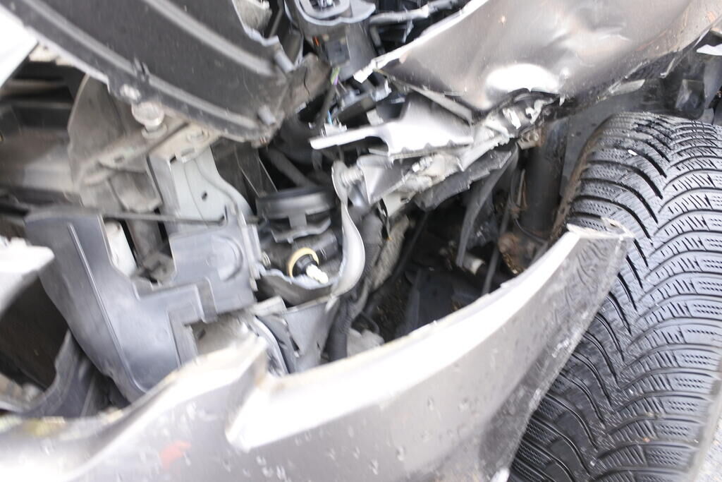 Die Stossstange mit Anbau-Zier-Verstärkungs-und befestigungsteilen, der Scheinwerfer mit Brillenblech, die Motorhaube mit Scharnieren, der Kotflügel mit Auskleidung und Befestigungen, das Radhaus sowie die Spritzwand im Bereich der A-Seule inkl. der Felge und deren Aufhängung sind beschädigt. Der Wagenvorderbau ist nach rechts verschoben, Der Seiten - und Kopfairbag sowie der Gurtenstraffer links wurden ausgelöst. Weitere Schäden gehen aus den Fotos hervor. Motor Getriebe Vorderachse Hinterachse Airbags ausgelöst: 2 unbekannt ( Abfallcode 16.01.04ak )