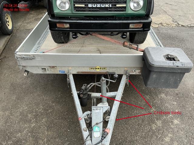 Châssis plié , fuite pompe hydraulique, traverse support de vérin tordu / Dommages préexistants: traces d'utilisation