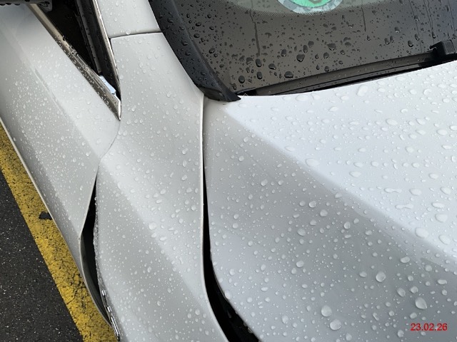 Beschreibung der Schäden: Ecke VR eingedrückt. Motorhaube, Stange, Scheinwerfer L+R, Kotflügel, Frontträger und Kühler. Keine Airbags gezündet, Motor läuft.
