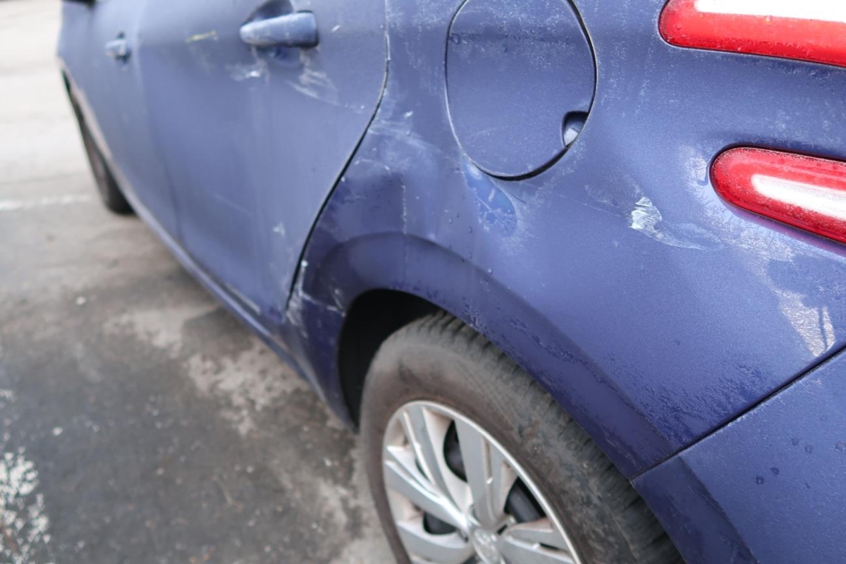 Airbag ausgelöst, Gurtstraffer ausgelöst, Radhaus hinten links, Seite links, Seitenwand links, Türe hinten links