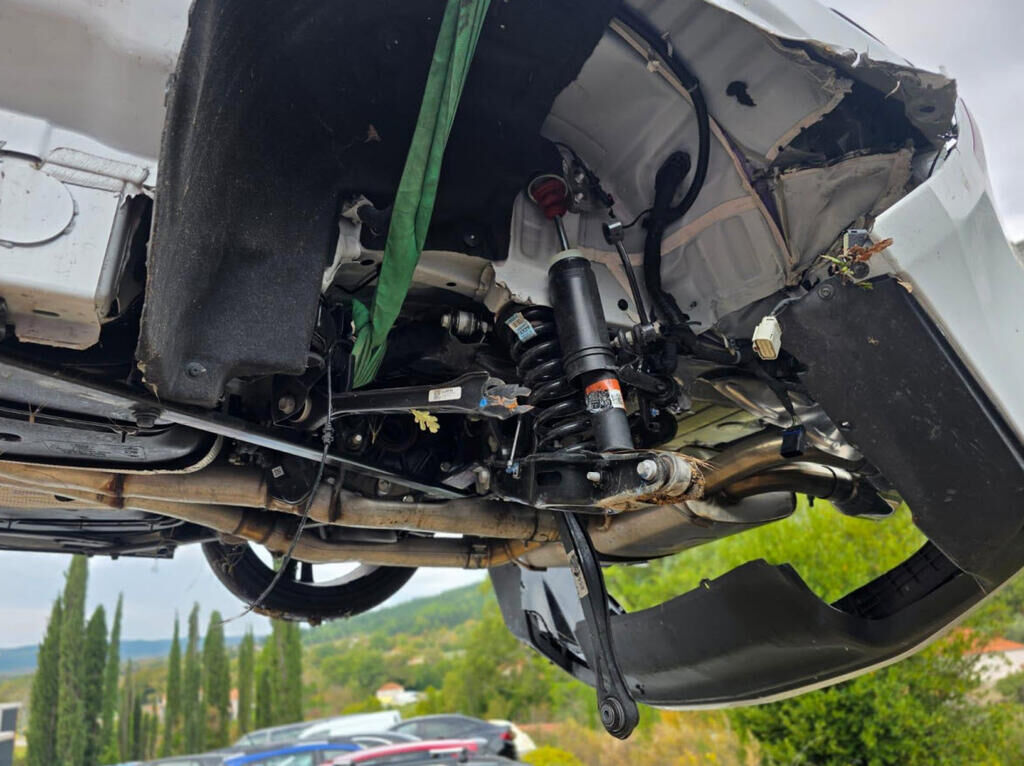 Hauptanprall - Seite links: - Aussenspiegel und Schwellerverkleidung links abgerissen - Türe und Seitenwand links deformiert - Radhaus links eingedrückt, teilweise eingerissen - Rad mit Radaufhängung HL abgerissen - Hinterachsträger und Radaufhängung HR beschädigt - Stossfänger abgerissen - Auspuffanlage beschädigt - Heck nach rechts deformiert - Risiko für weitere Beschädigungen Motor Getriebe Vorderachse Hinterachse Airbags ausgelöst: 0 unbekannt ( Abfallcode 16.01.04ak )