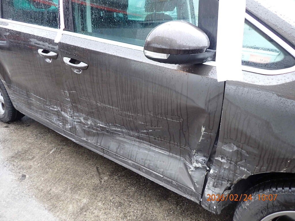 Kotflügel vorne rechts, A-Säule unten rechts, Türe vorne rechts, B-Säule rechts, Schiebetüre rechts, Seitenwand rechts, Stossstange hinten rechts und Felge hinten rechts beschädigt Motor Getriebe Vorderachse Hinterachse Airbags ausgelöst: 0 unbekannt ( Abfallcode 16.01.04ak )