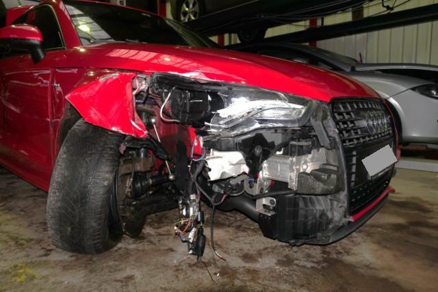 Aufhängungsteile vorne rechts beschädigt. Risiko Lenkung. Motoraufhängung/Aggregateträger ist beschädigt.